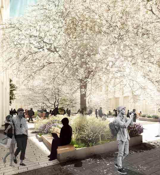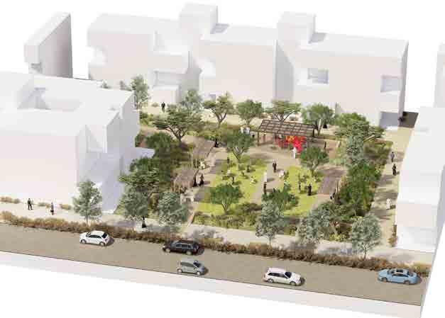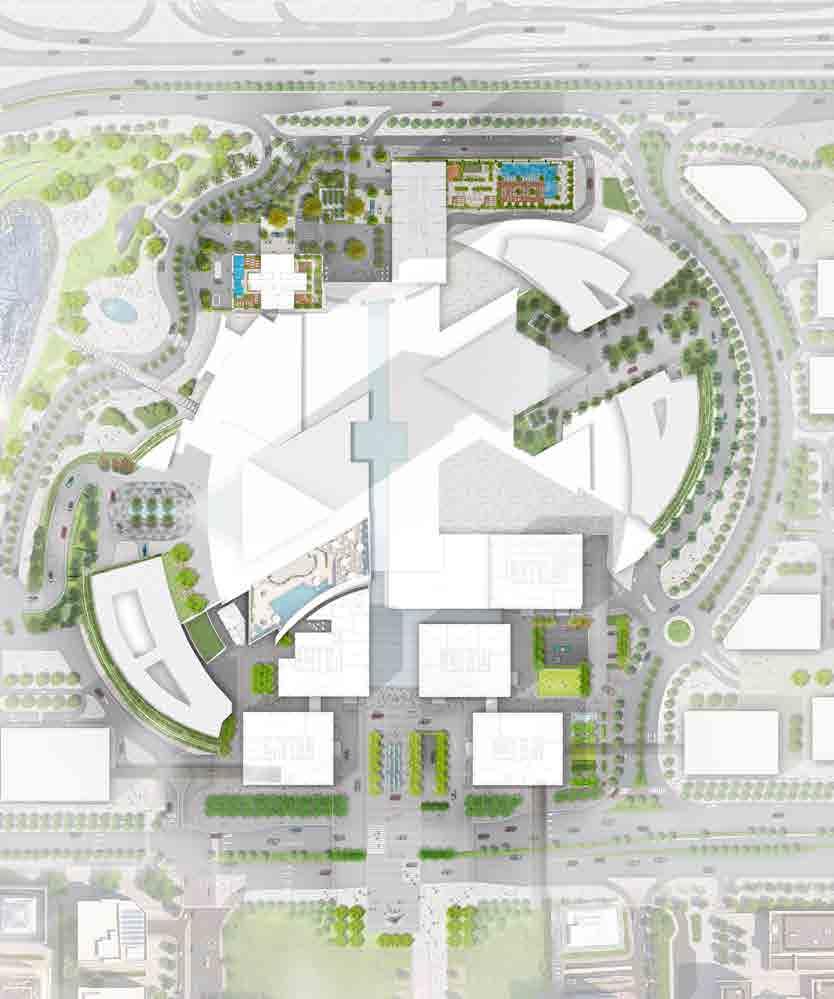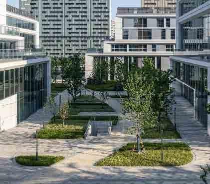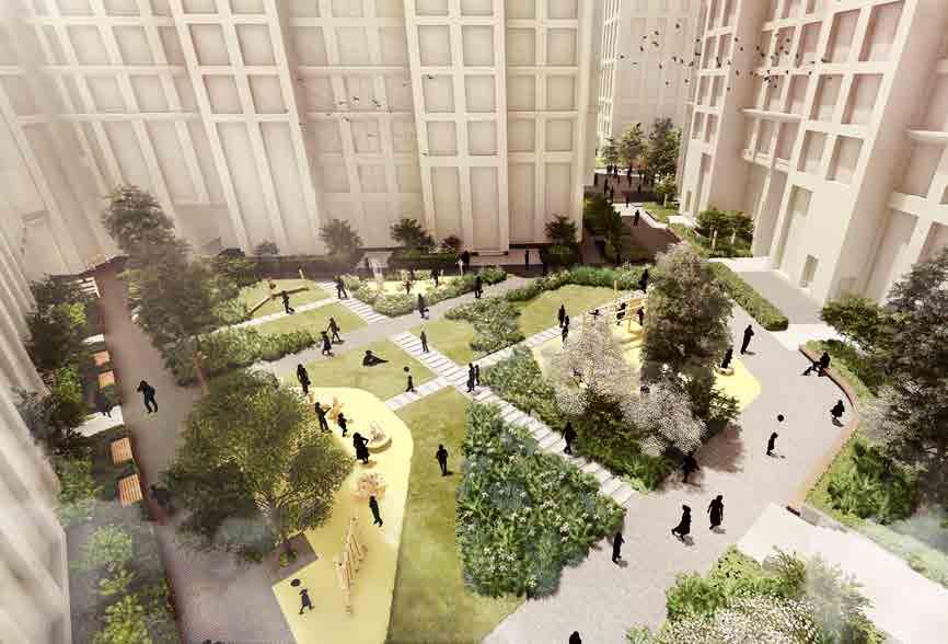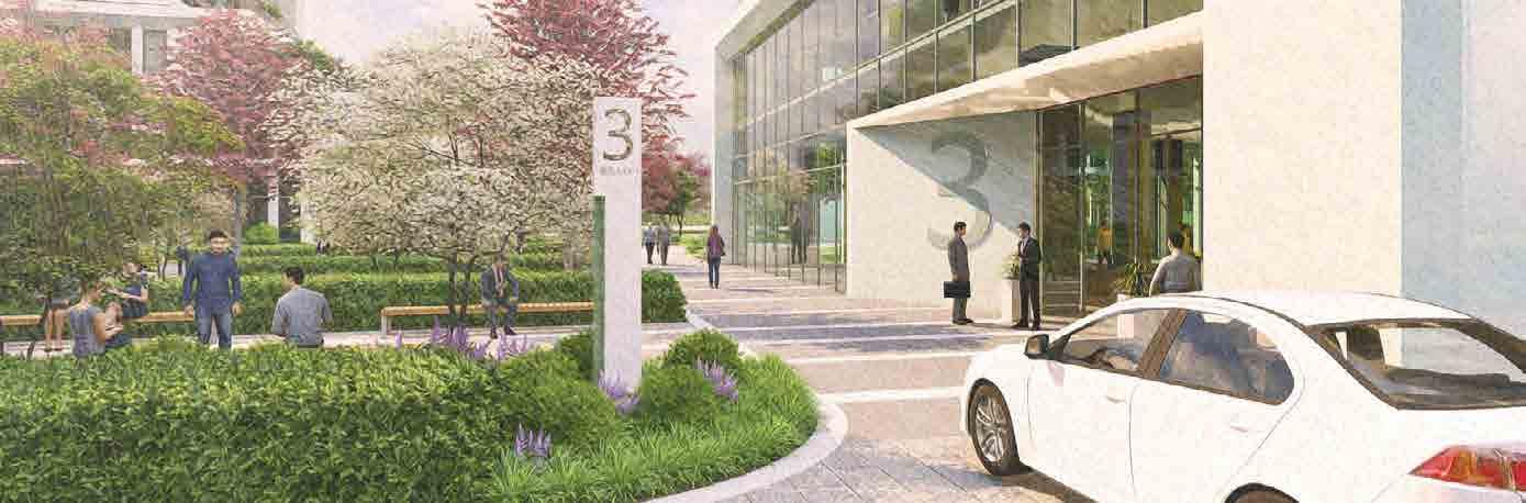 Wellness courtyard provided for specific users, Landmarks sited at the entrance as gateways to guide the direction. Underground parking spaces provide flexibility