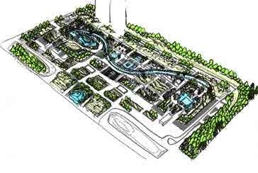 Model updating, with designed plantings, furniture, playing facilities, paving. Visualization producing.
