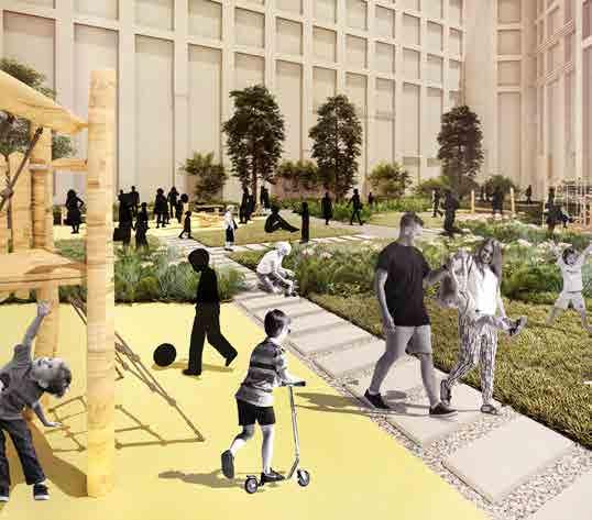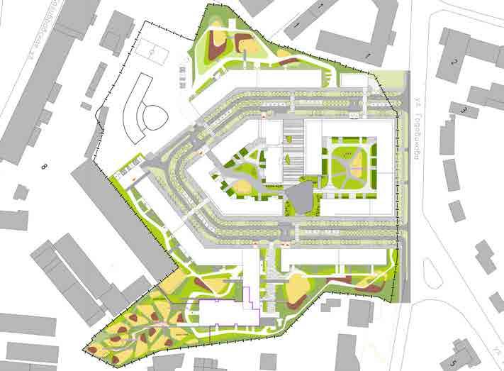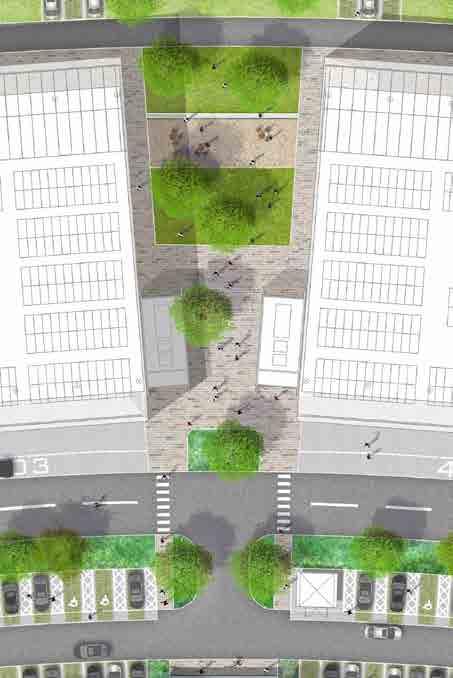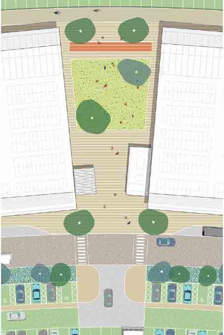 • Developed landscape masterplan, including courtyard studies, parking layout and SuDS integration.