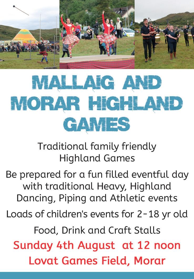 Highland Dancing, Highland Cattle, Vintage Tractors / Engines, Pets Corner, Dog Show, Horse Display, Childrens’ Games / Races, Bouncy Castles, Hill Race & Ferret Racing, Ceilidh Band, Refreshments & Teas Available and Lots More