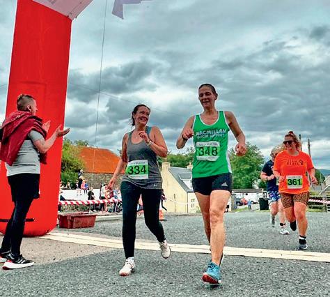 Above: Anja Jardine at the finishing line at the Mull 10k in aid of the Macmillan Cancer Support.