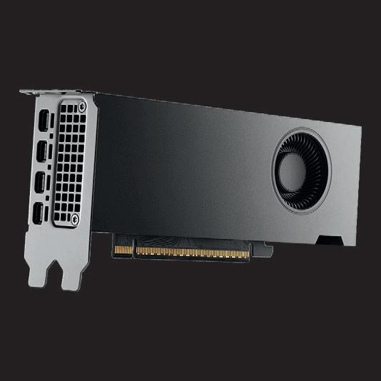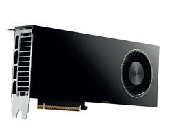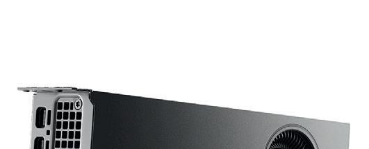 The RTX Pro 5000 (300W) and 4500 (200W) are dual-slot, full-length boards, while the RTX Pro 4000 (140W) is singleslot. Meanwhile, the RTX Pro 4000 SFF and 2000 (both 70W) are low-profile, dual-slot cards designed for compact workstations such as the HP Z2 Mini and Lenovo ThinkStation P3 Ultra SFF (see review on page WS30). With an optional full height bracket, both cards will technically fit inside a standard tower, but it doesn’t make much sense to do that with the 4000 SFF. Despite having the same core specifications as the full-size 4000, its lower 70W TDP reduces performance,