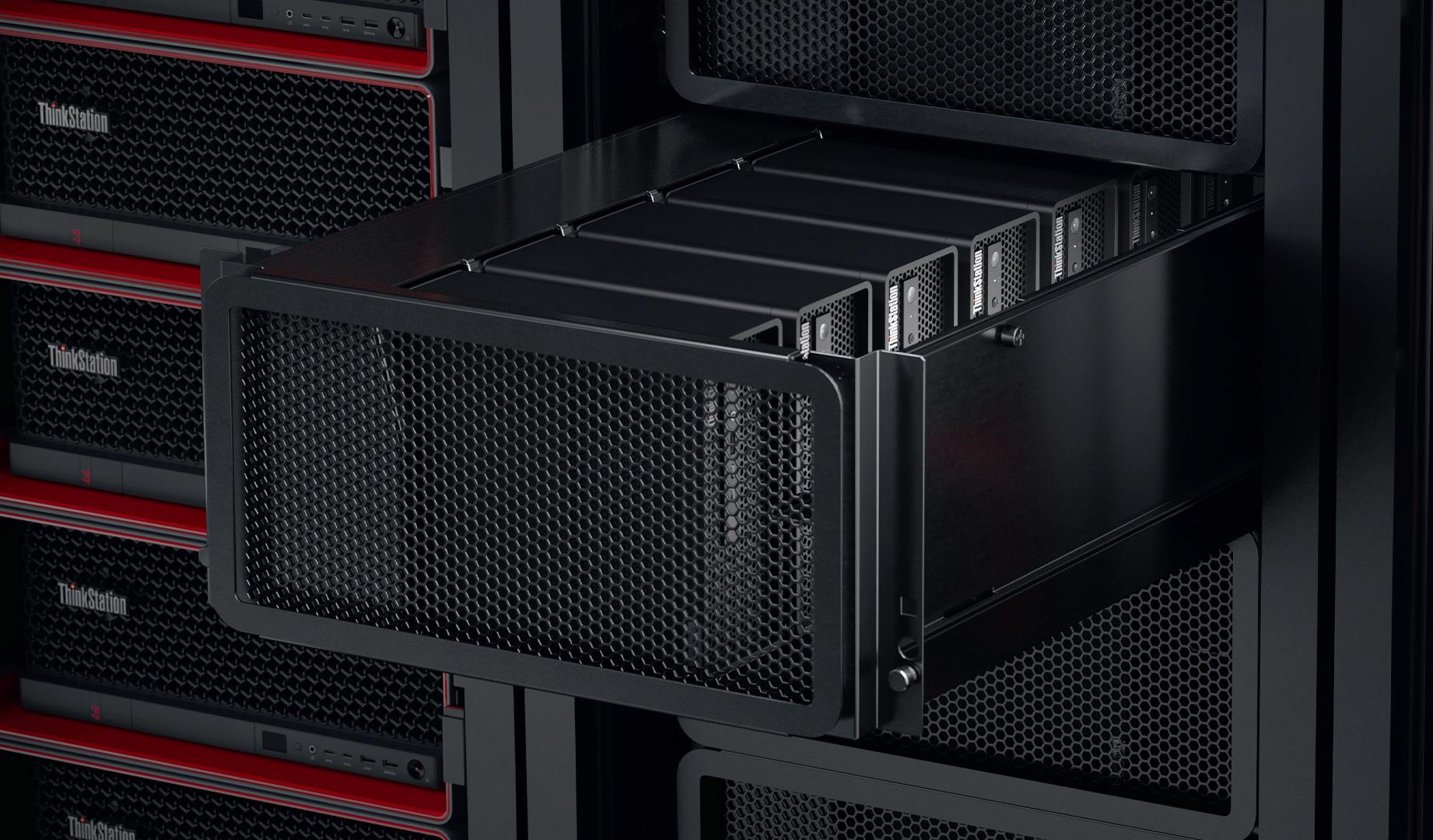 Machines such as the HP Z2 Mini and Lenovo ThinkStation P3 Ultra SFF are increasingly being mounted in racks rather than sitting on desks. Thanks to their small form factors, these systems offer impressive density. With the ThinkStation P3 Ultra SFF, for example, seven individual workstations can be housed in a 5U chassis.