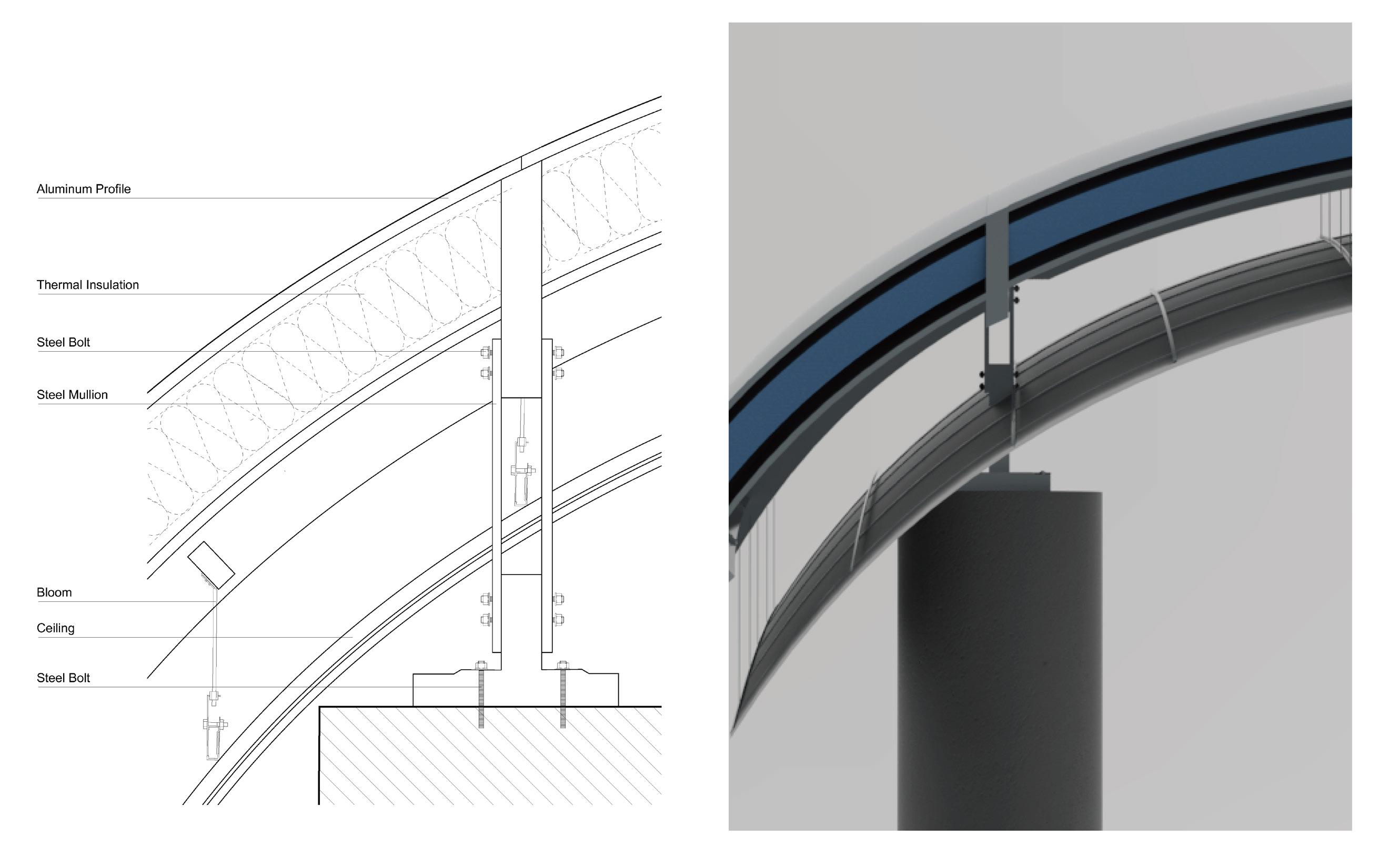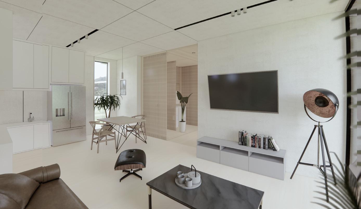 A framework system has been designed to enable the substitution of different planes and facades, aiming to minimize the variety of components as much as possible.