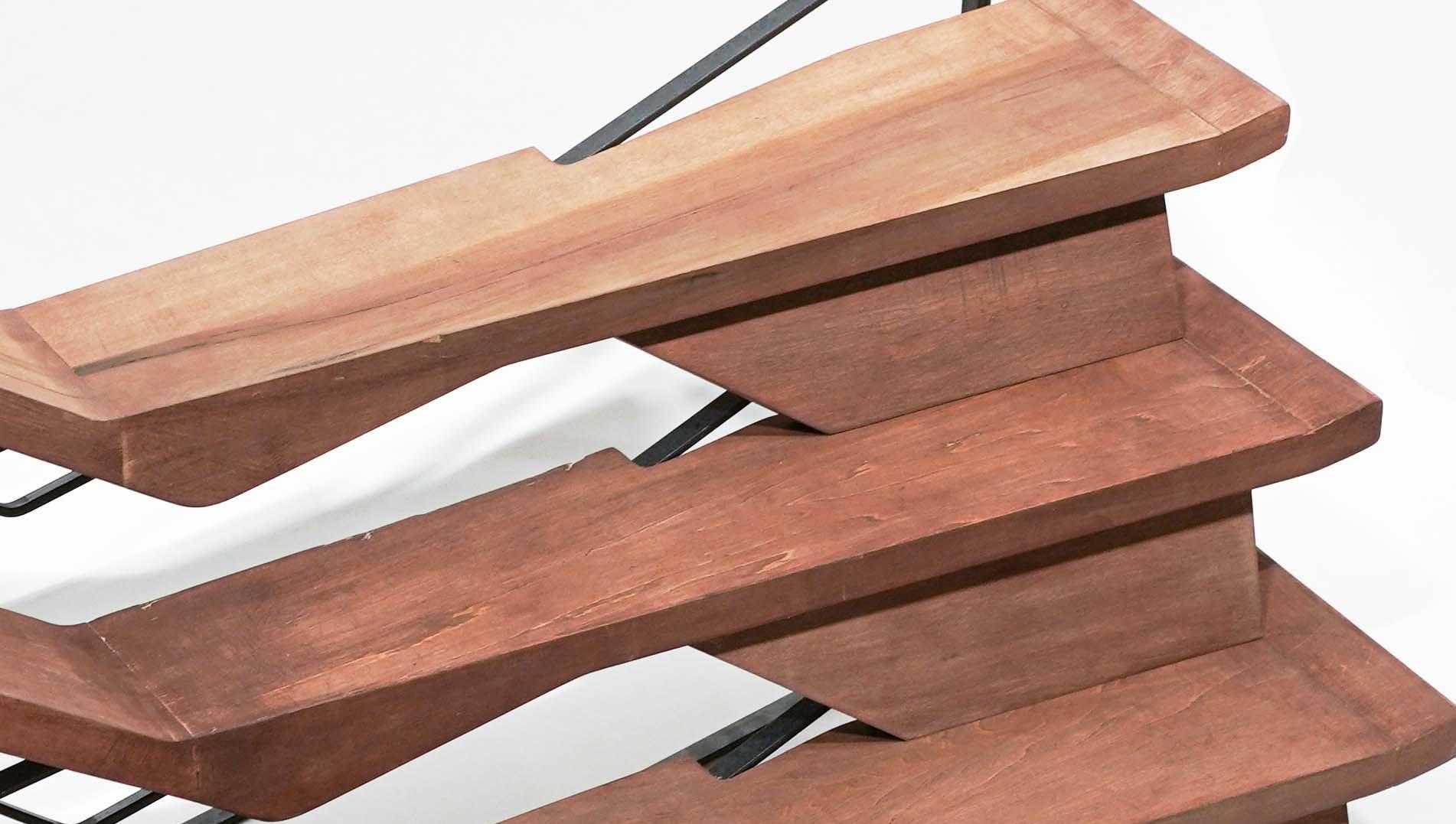 The inherent complexity of the metal frame skillfully gives the audience an illusion, while the deliberate continuity of the two sets of frames effectively creates a convincing impression, particularly in the front view, that they seamlessly connect.