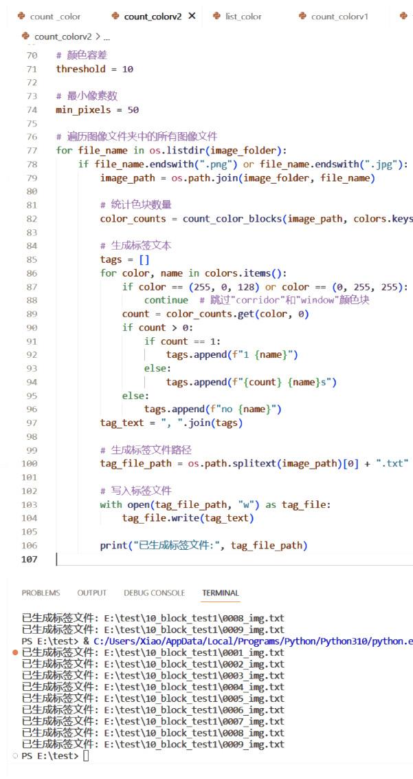 I used the assistance of ChatGPT to write code that identifies the functional attributes of color blocks, helping me to bulk identify room functions and complete labeling. The second step is to manually add general labels, which act as trigger labels. The third step is training, and the fourth step is evaluating the optimal state of different model versions and parameters.