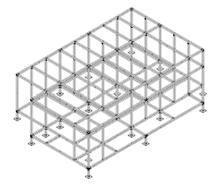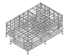 A framework system has been designed to enable the substitution of different planes and facades, aiming to minimize the variety of components as much as possible.