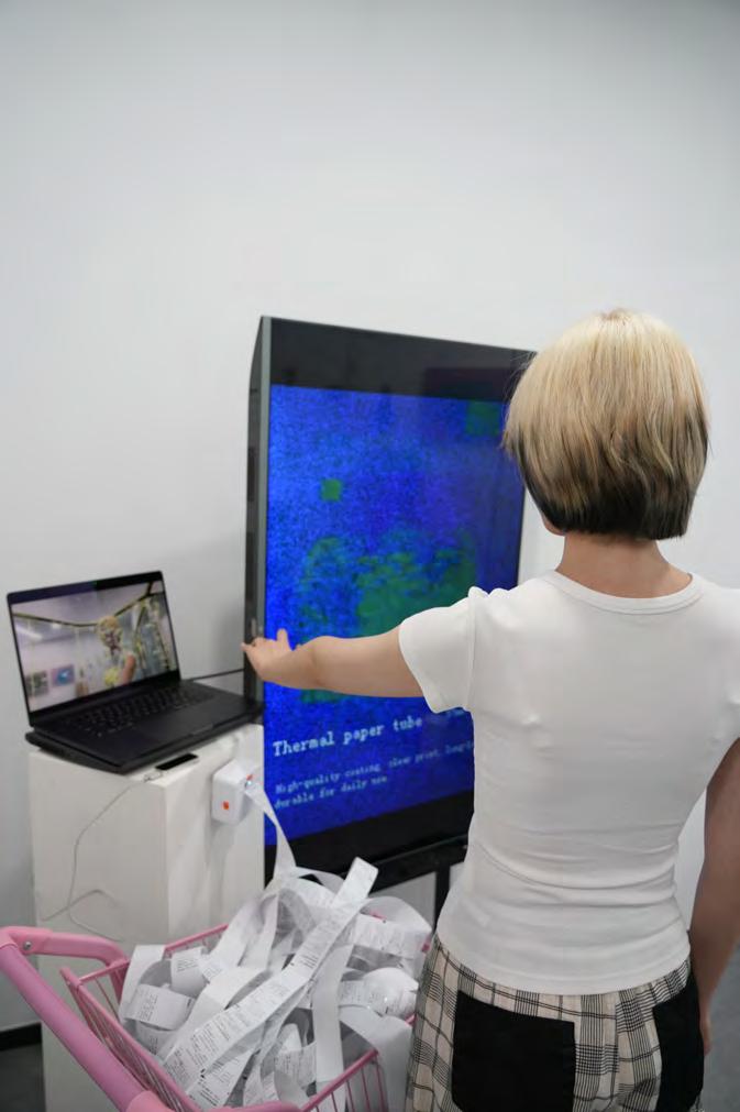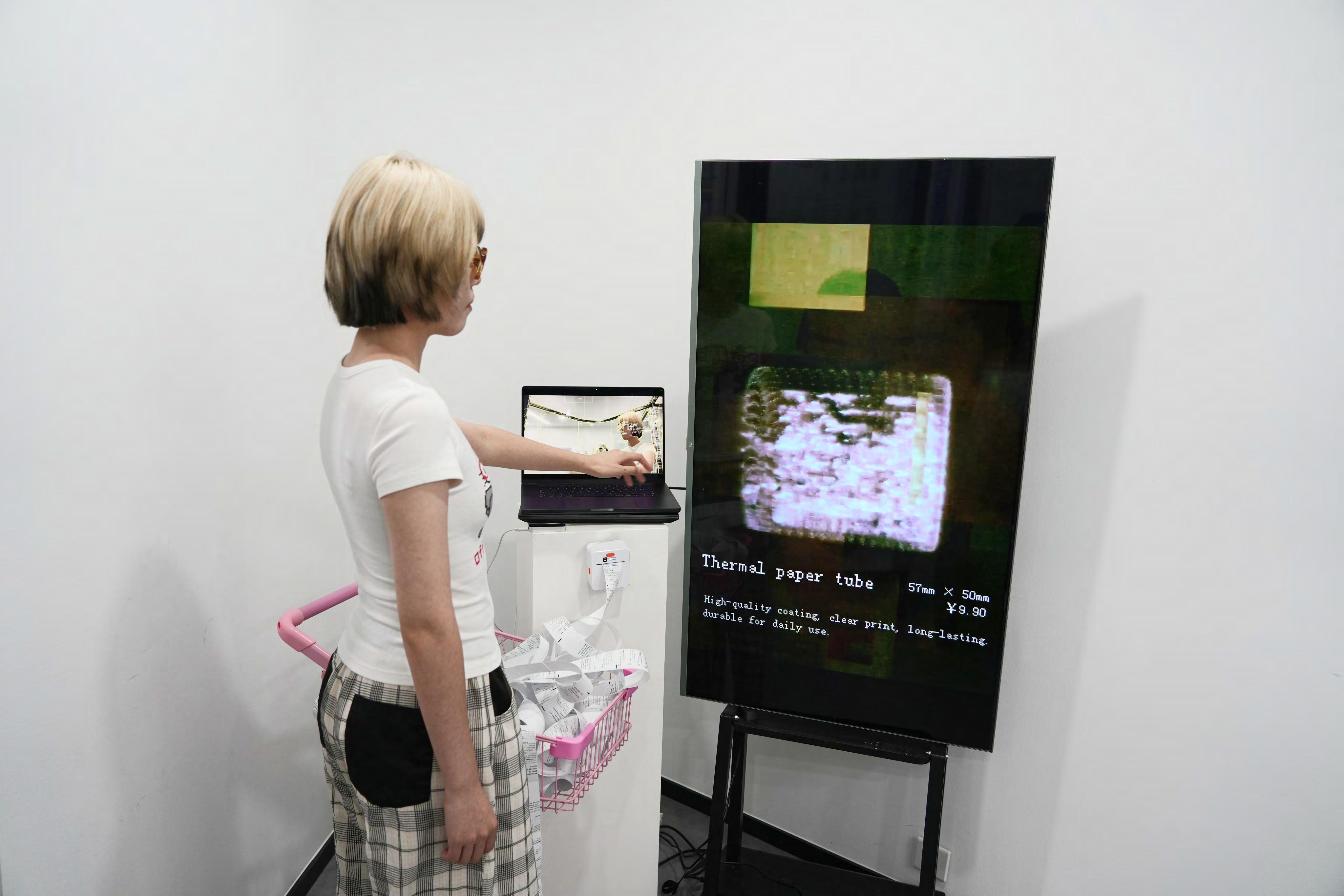 I use a receipt roll as a virtual product. It symbolizes consumption, and its absurd "sale" is designed to heighten the audience's sense of deprived freedom of choice. Why choose receipt rolls?