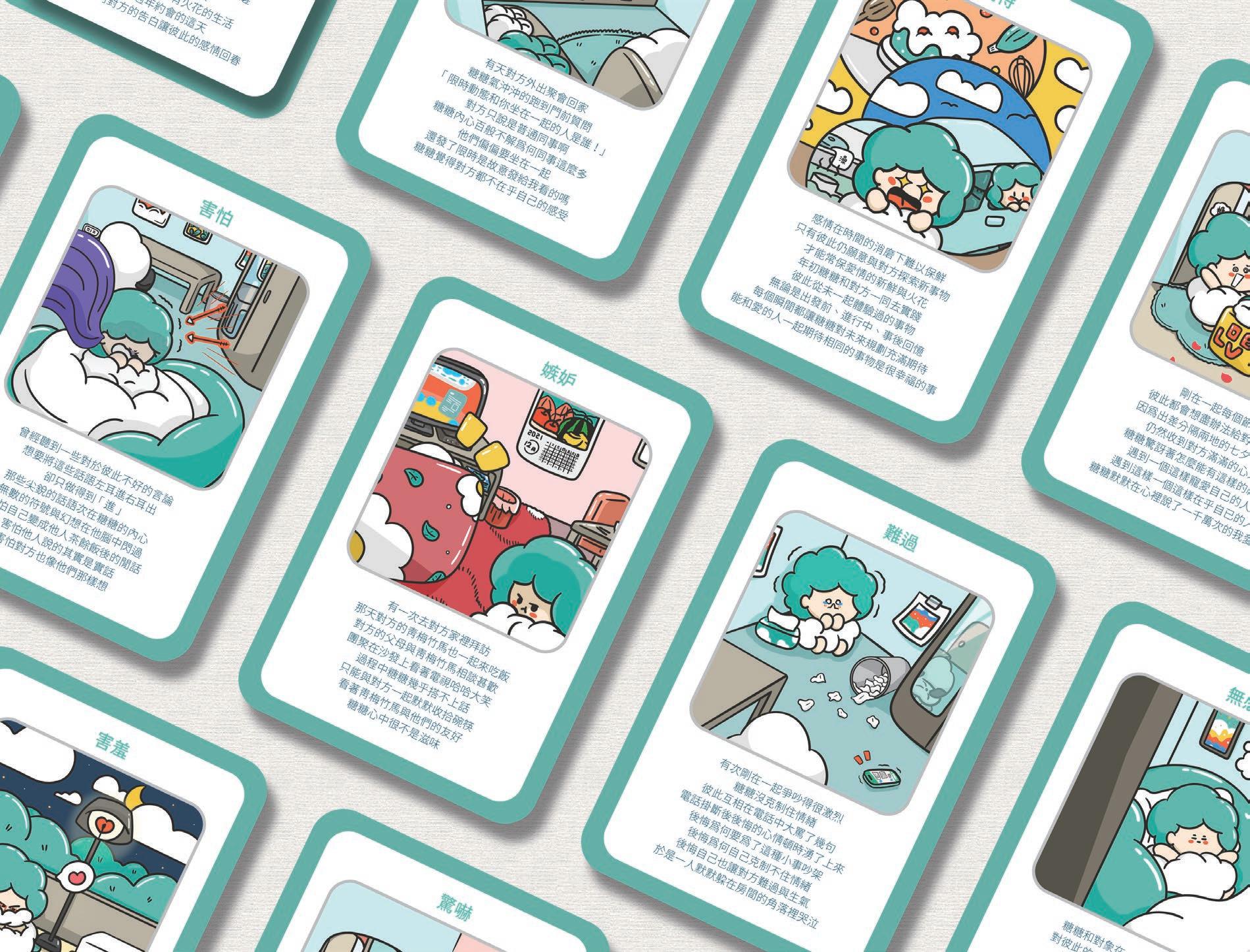 以產品內可愛、療癒的風格與文字治癒並陪伴失戀者 面對,加速釋懷這段感情且不留後遺症的慢慢放下。