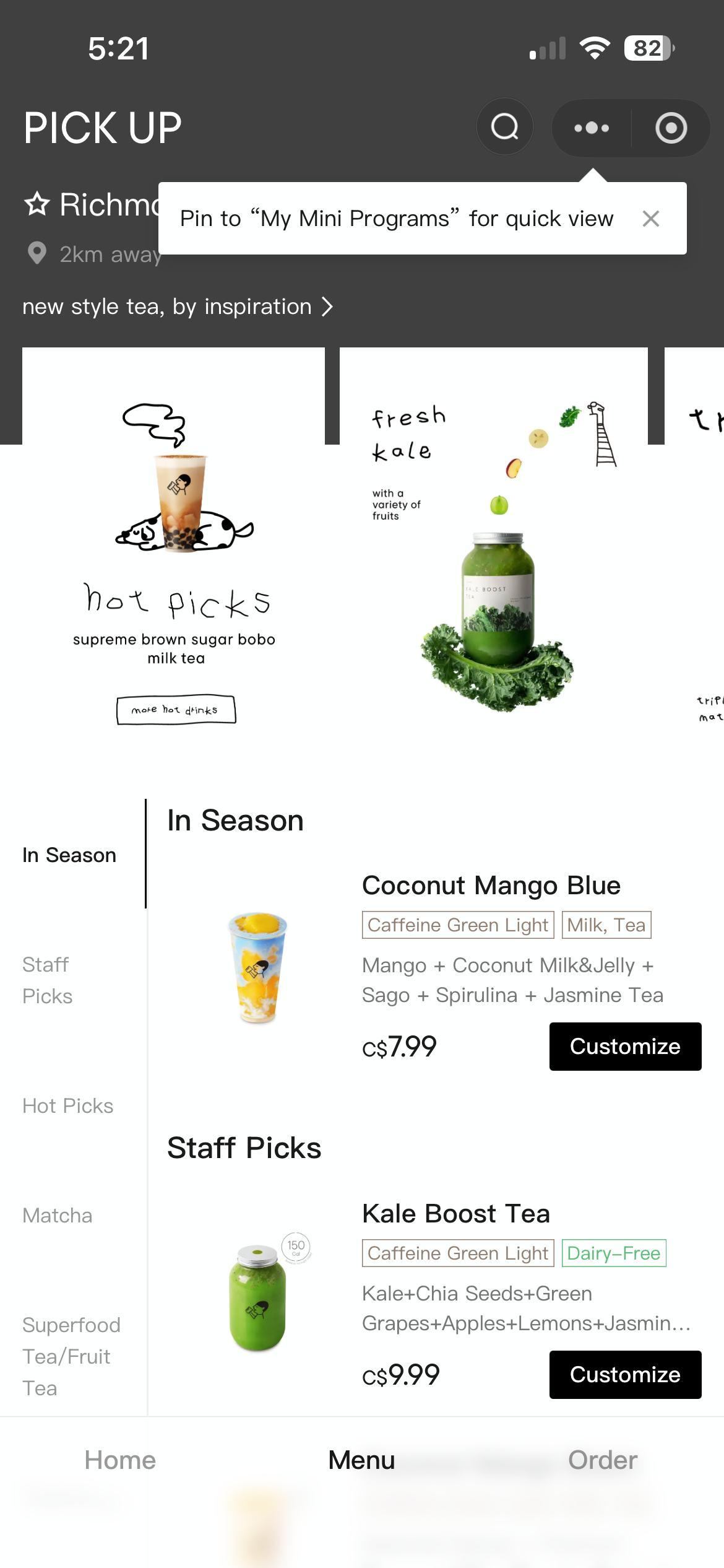 Build a daily habit through an integrated flow of wellness, ordering, and rewards