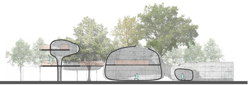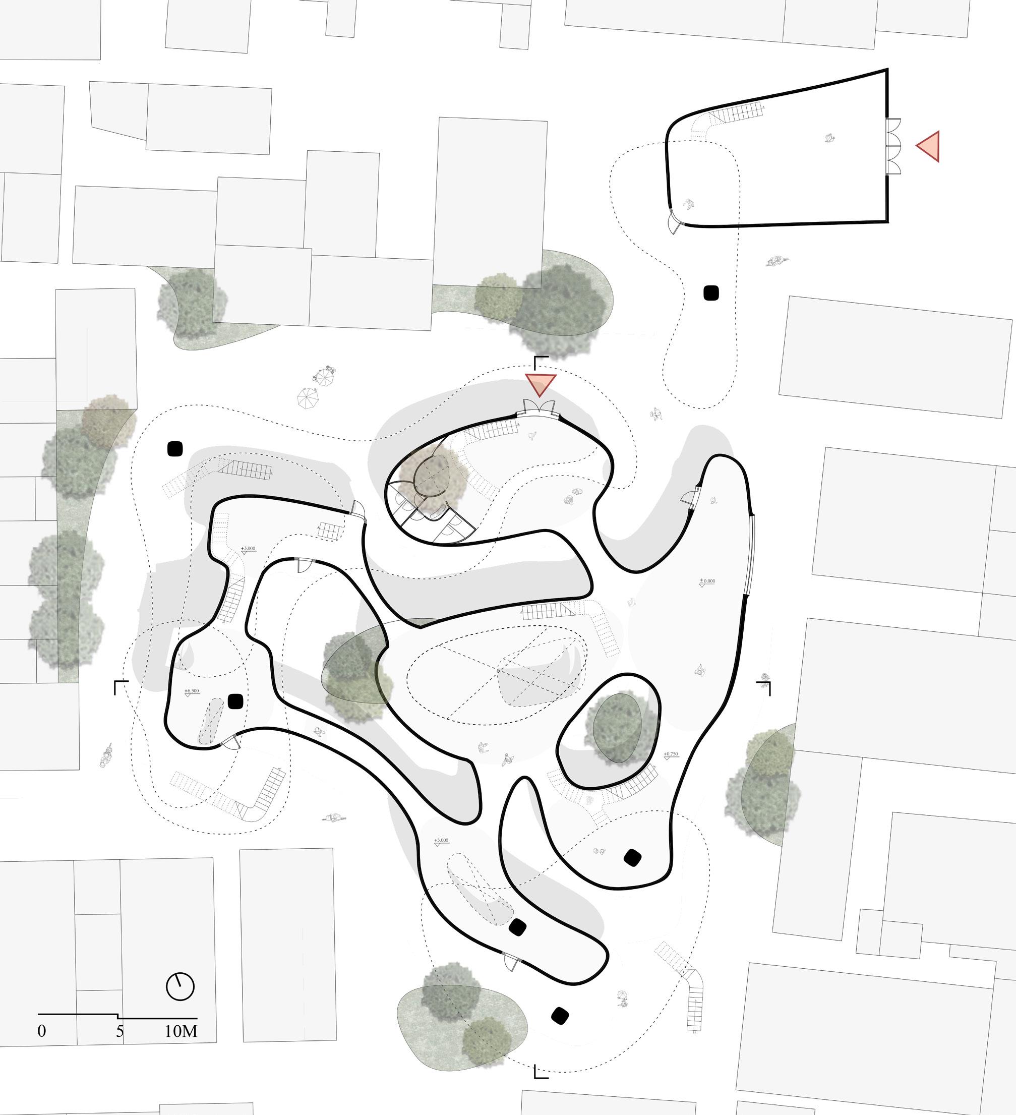 Architectural sketches are set up in the area to form a "garden within a garden" to renew and improve the quality of local public urban landscape.