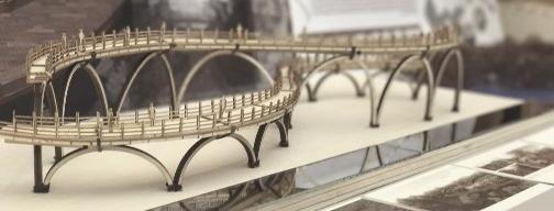 The bridge house adopts a traditional wooden frame structure, I define the roof shape firstly, then the structure grid is followed the roof height to shape the gradual changes. One column supports two horizontal timber beams, intend to make the form more light, as like the roof floats above the river.