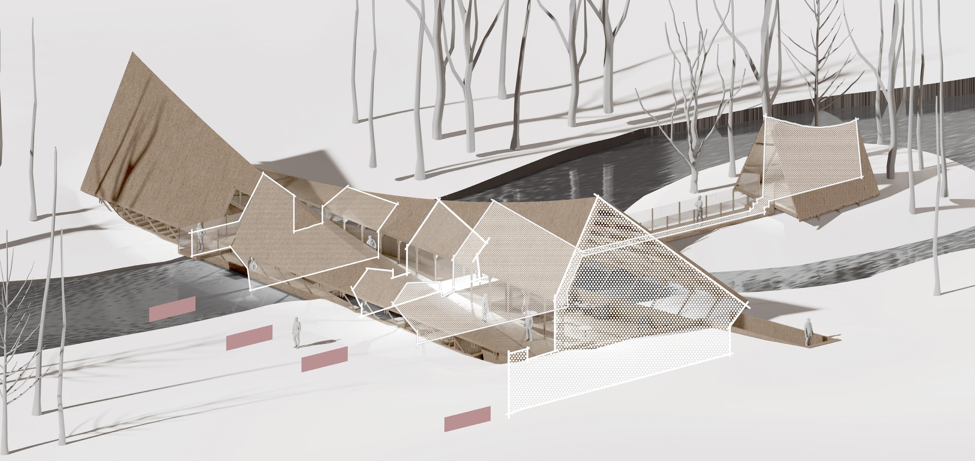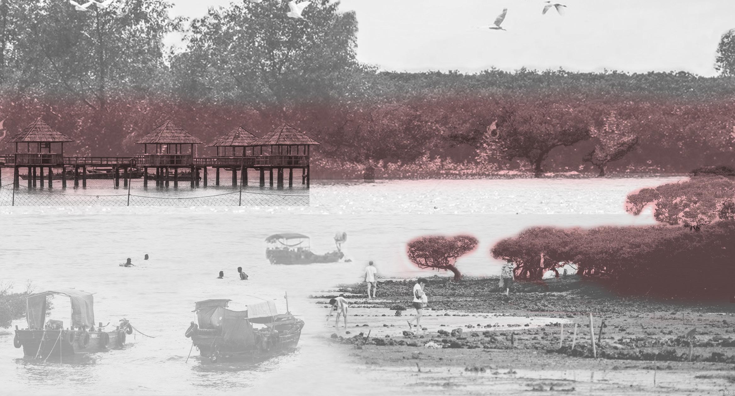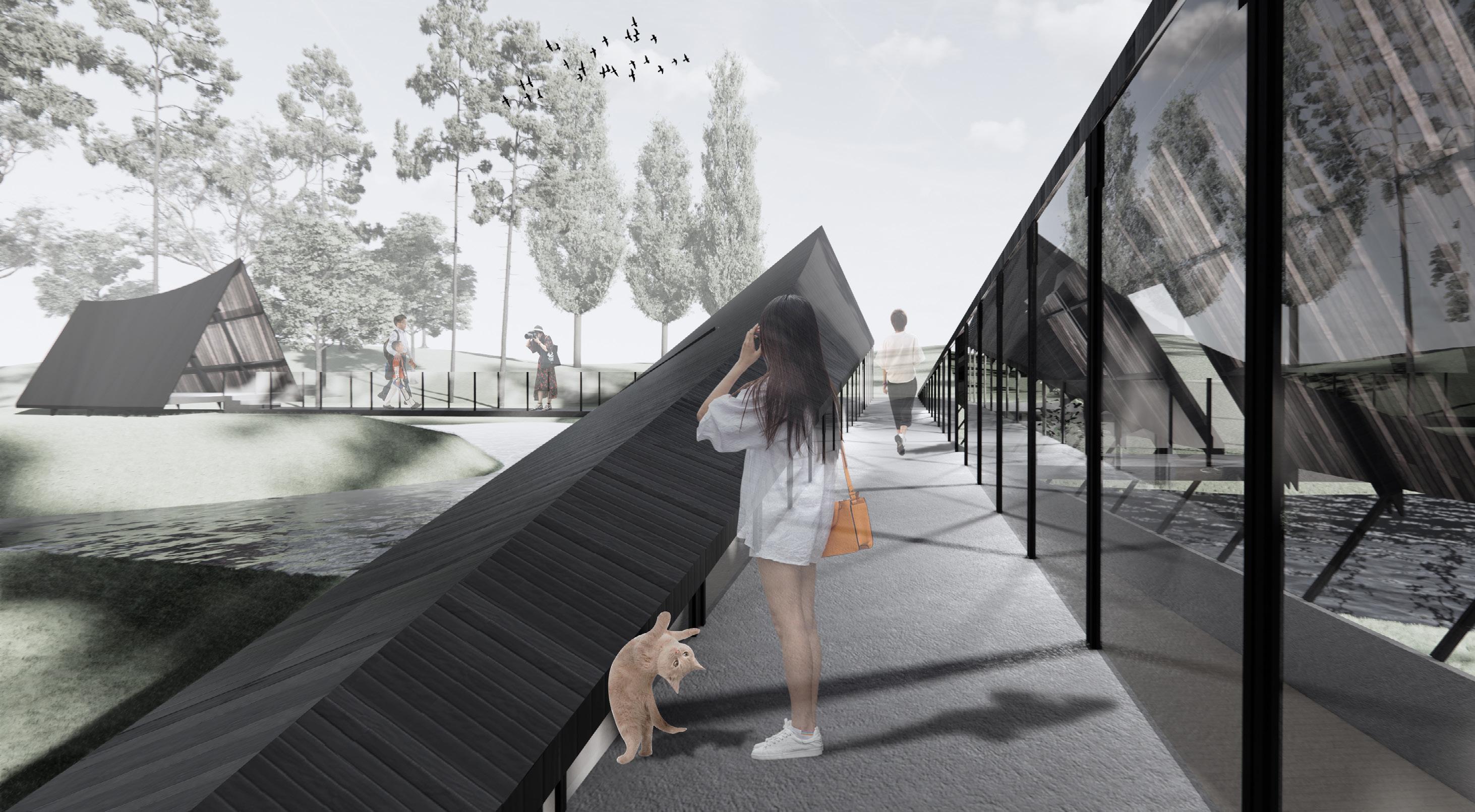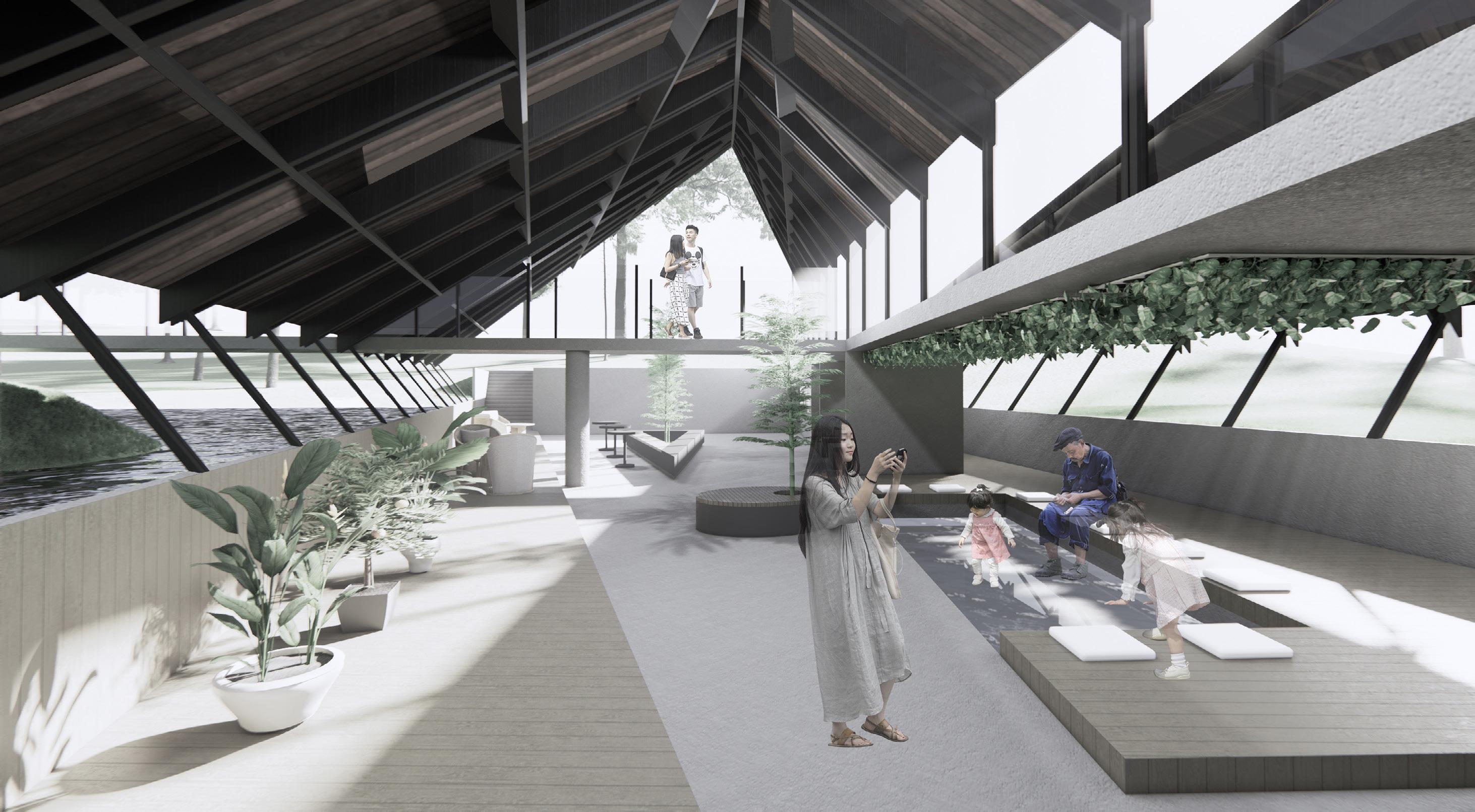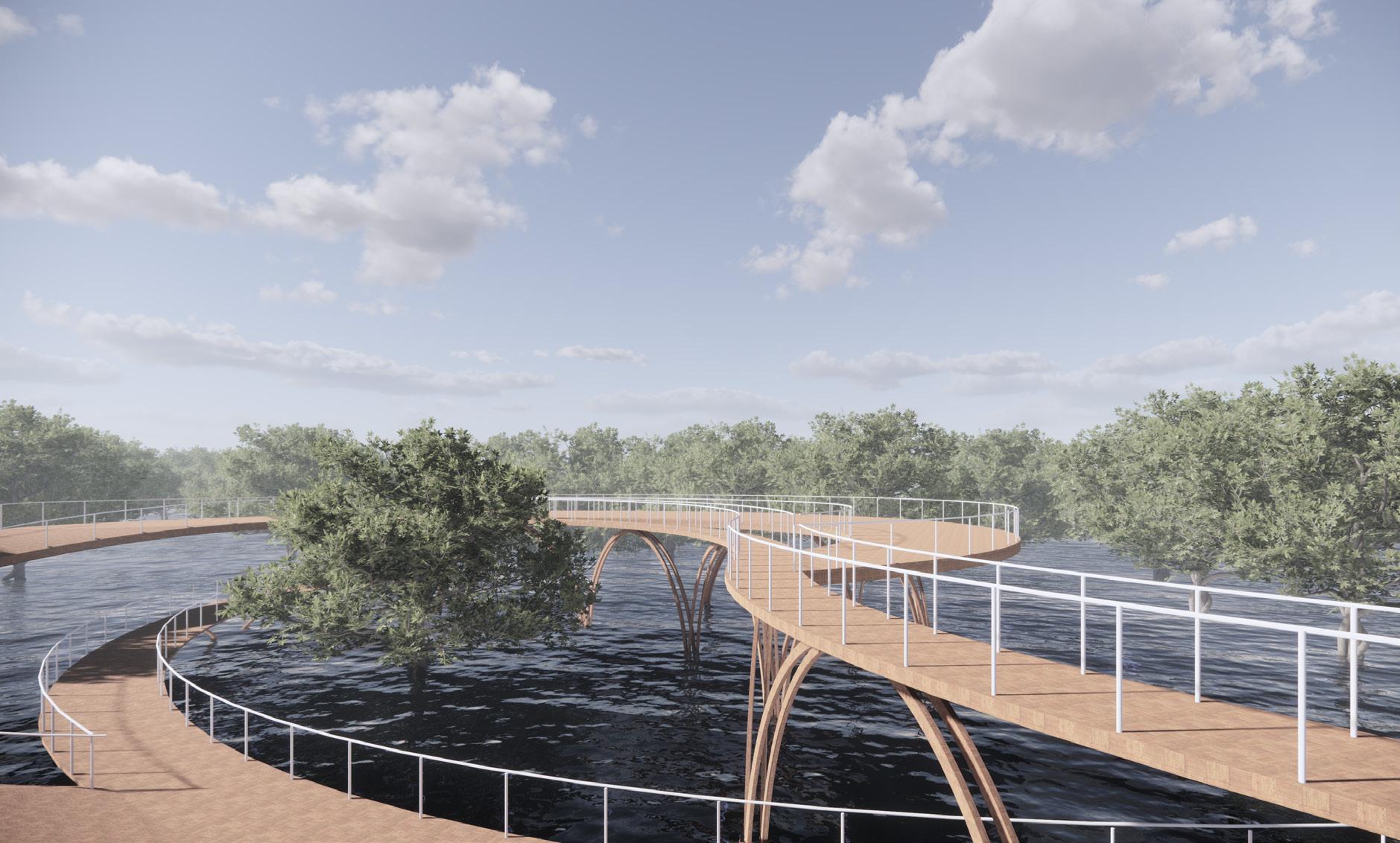 The intersecting, undulating trestles as a spatial organisation system, together with the lookout tower, to enhance the accessibility of the area and improve the tourism benefits of the mangrove nature reserve. On the one hand, it provides different heights and spatial types at the vertical level to meet the needs of ecological and crowd activities, on the other hand it can better integrate into the layout of the local natural environment and reduce the impact on the natural environment.