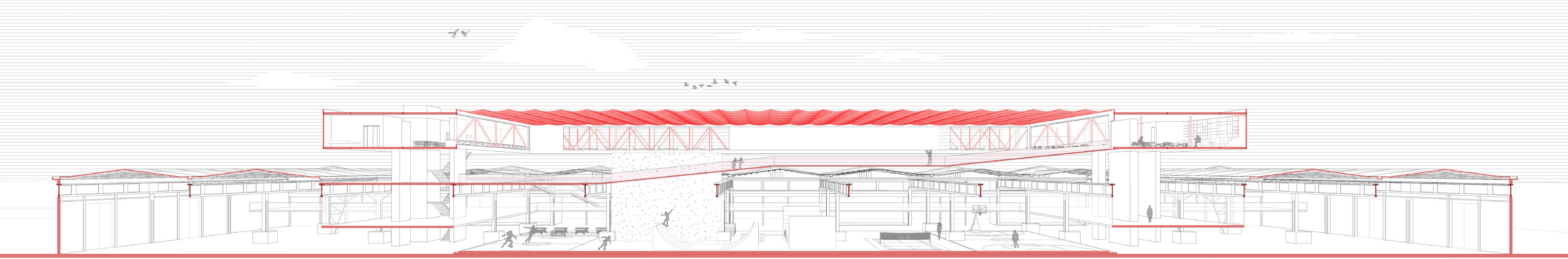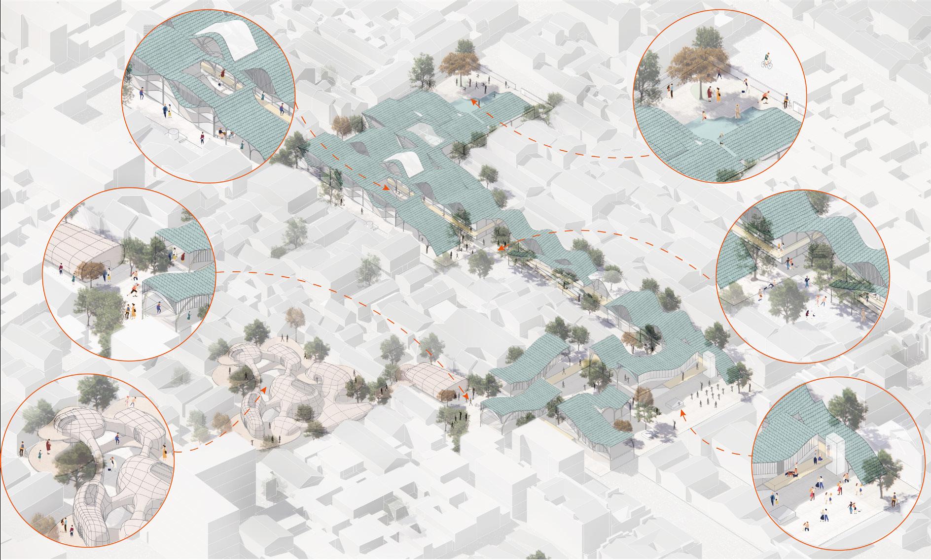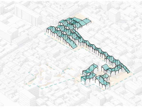 We tend to stimulate the vitality into the city by creating a commercial block that merges youth hotel, market plazas and immerse drama theater together.