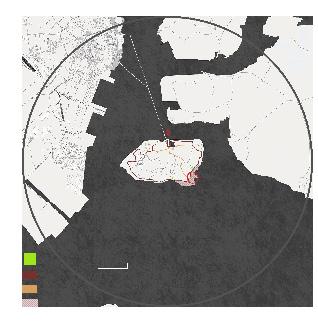 The site is roughly divided into three parts, the northern part is the hotel, the middle part is the market, and the southern part is the theater.