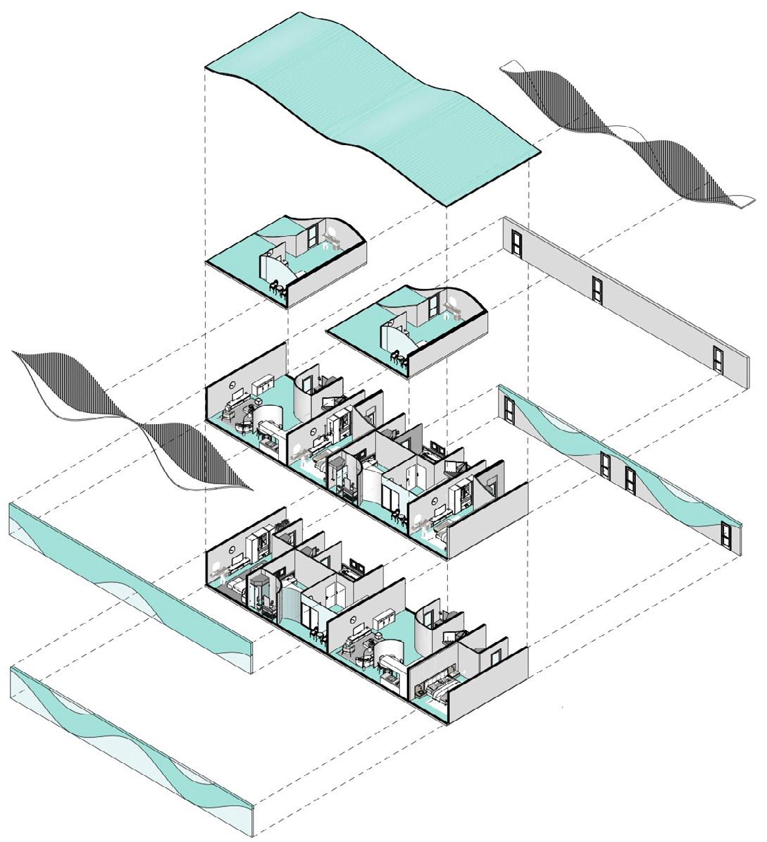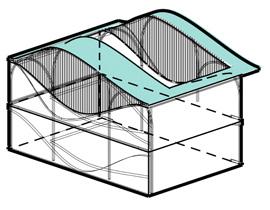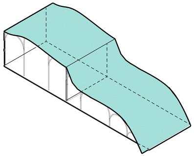 Space Scale: Small Type: double Slope Roof Column Grid: 1x1 Space Scale: Small Type: Multiple Wave Roof Column Grid: 4x3 Space Scale: Medium Type: corridor Connecting two housing Column Grid: 1x3 1x3 Space Scale: Big Type: Courtyard Column Grid: 5x3 5x3