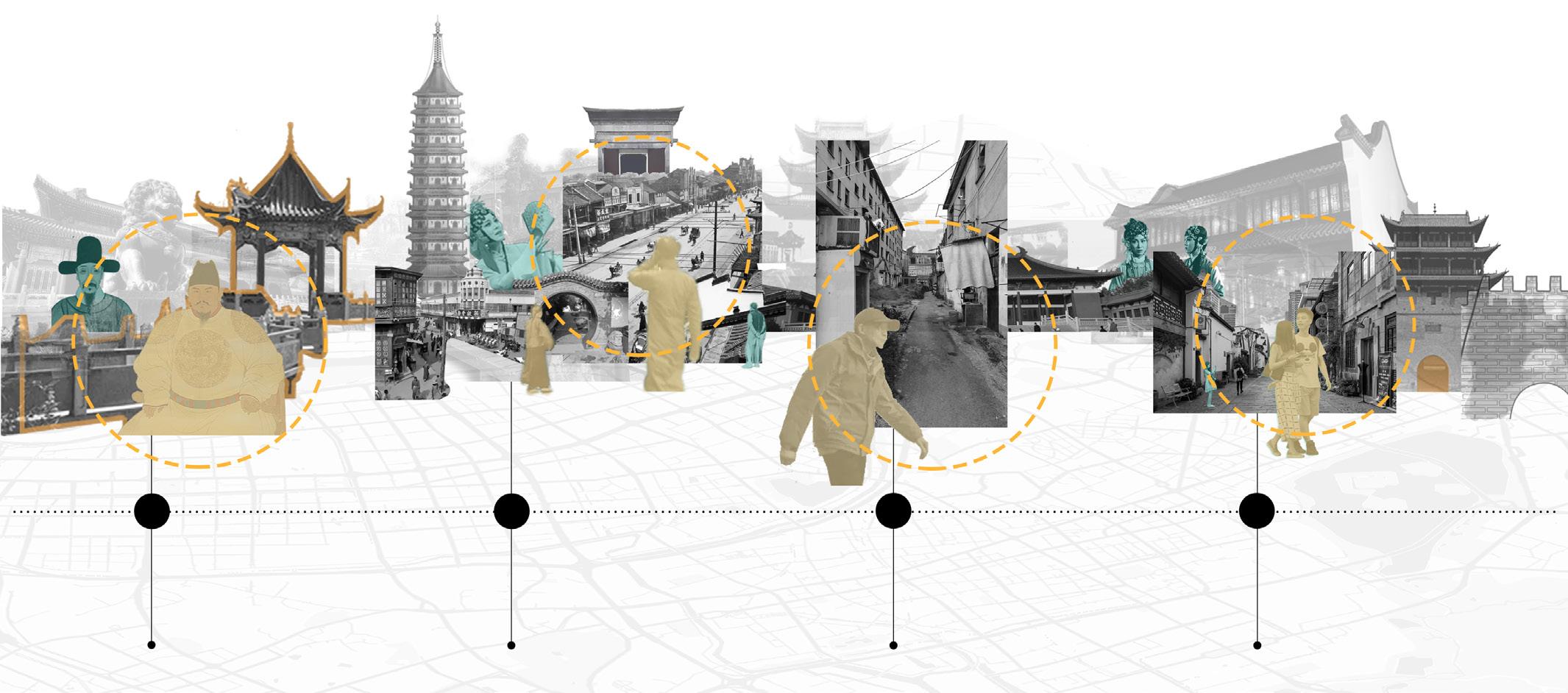 20-40 years Woman 20-40 years 0-20 years Woman · Taicang Lane Residence · Comment Street Residence · Nanjing First High School · Xinanli Commercial District · Garden District · Wanxiangtiandi Commercial District · Nanjing Folklore Museum "There are many traditional houses located in the old streets and alleys Nanjing "There are combination of the new city and the old city." "There are many people living and Ag here ShengzhouRoad Zhongshan South Road Comment Street Daban Lane LingzhuangLane SITE Qinhuai River Mochou Lake Park tradesman C14 C19 C20 C21