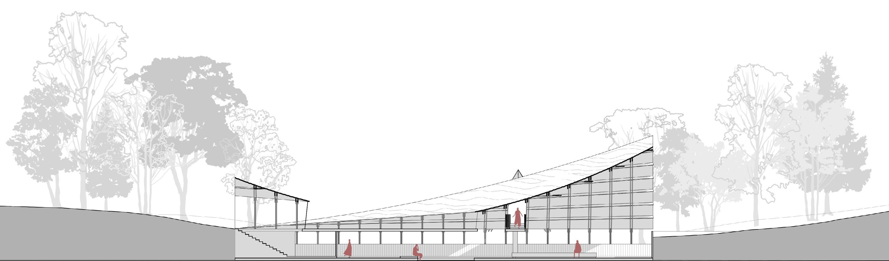 9 1 2 3 4 5 6 7 7 7 8 9 10 7 1 Entrance Hall 2 Bar 3 Theatre Space—Royal Palace 4 Theatre Space—Prime Minister's residence 5 Theatre Space—The place of wedding 6 Theatre Space—residence of the governor 7 Outdoor connecting corridor/Outdoor platform 8 Theatre Space—Battlefield 9 Restroom 10 Export Space A A B B East Elevation Immersive Drama Theater (illustrated by Liu Xinyue) Plan