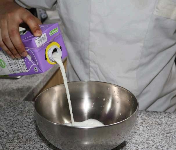 2. Agrega la leche y el agua, y mezcla hasta obtener una masa suave y homogénea.