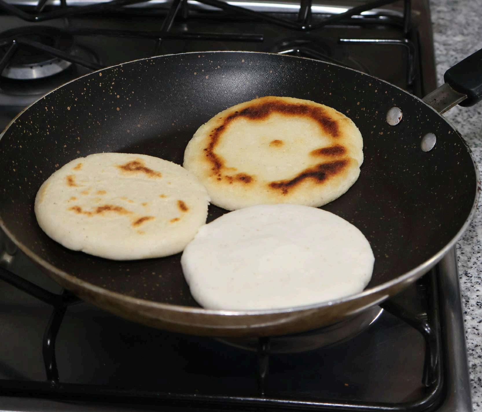 L as arepas son como el pan árabe, en forma de disco que se ponen a cocinar en una sartén
