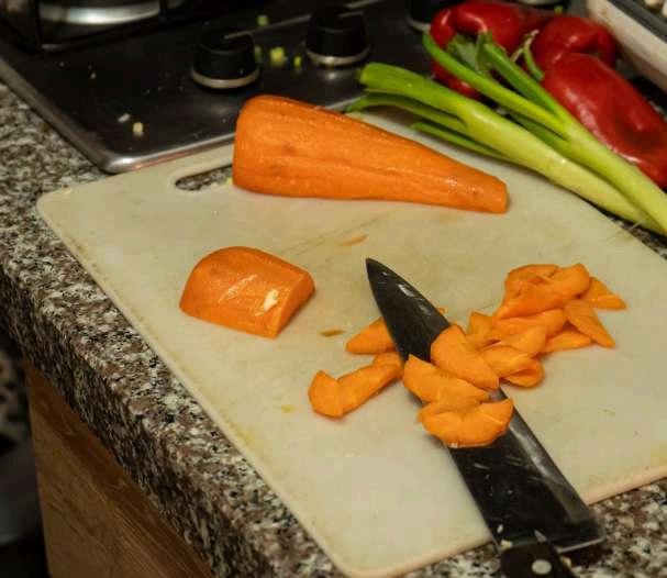 • Sofreír el achiote con pimentón, zanahoria, cebolla y ajo.