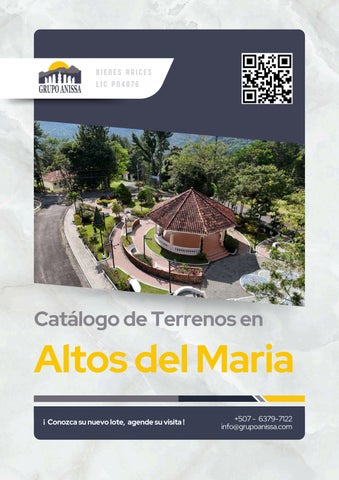 GRUPO ANISSA En Grupo Anissa, nuestra misión es crear bienestar para las familias y empresarios en Panamá, ofreciendo un servicio de alta calidad en bienes raíces. Nuestros Valores: -Generosidad -Honestidad -Calidez -Excelencia -Creatividad ¿Por Qué Escogernos? En Grupo Anissa, combinamos experiencia, profesionalismo y un profundo conocimiento del mercado inmobiliario en Panamá para ofrecerle un servicio personalizado y eficaz. Nos comprometemos a hacer de su experiencia inmobiliaria un proceso sencillo y satisfactorio, brindándole soluciones adaptadas a sus necesidades específicas. Con nosotros, puede confiar en que está en manos de expertos dedicados a su bienestar y éxito en cada transacción. Corredor de Bienes Raíces Lic PN4876 Cel. (507)-6379-7122 info@grupoanissa.com www.grupoanissa.com Miembros de ACOBIR Facebook: @grupo_anissa- Instagram: @grupo_anissa - Twitter @grupo_anissa