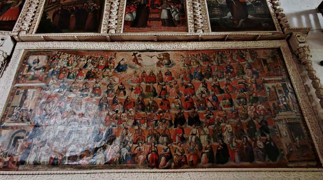 Dentro de la iglesia, los cuadros de santos y escenas bíblicas están acompañados por detalles ornamentales en madera tallada, que muestran la destreza de los artesanos locales. La iluminación natural que entra por sus ventanales permite apreciar la riqueza de los colores y detalles en cada obra.