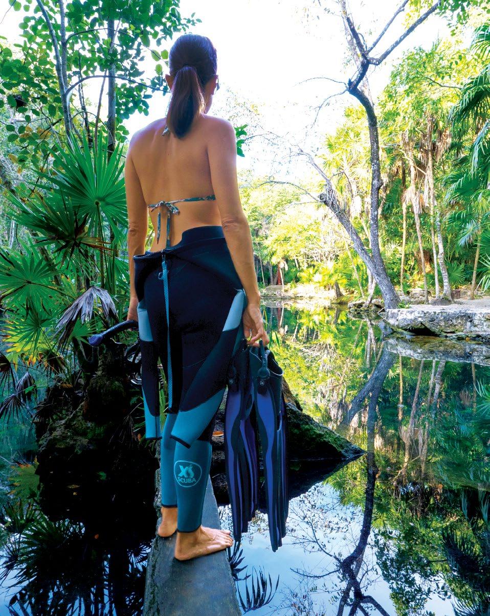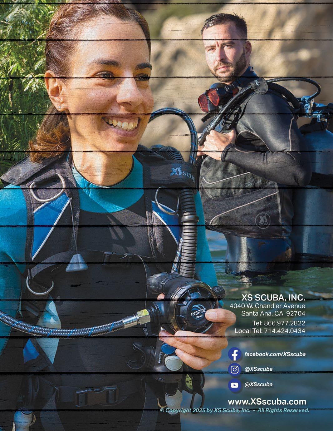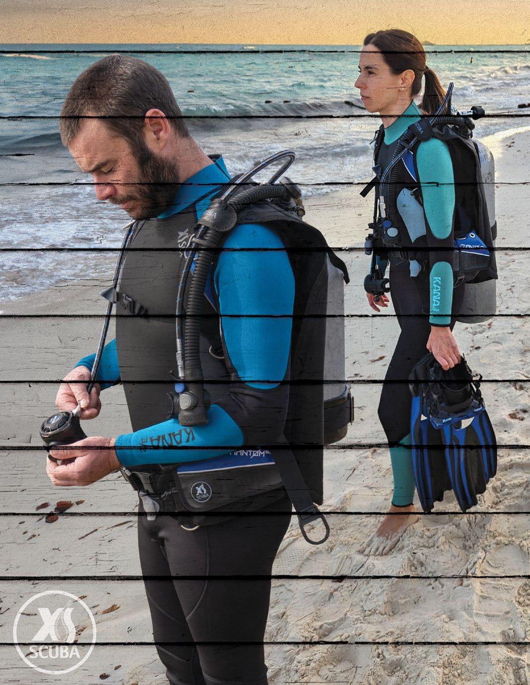 In the streamlined configuration, the hose on the primary regulator routes under the diver’s arm and attaches to the second stage with a 90° swivel adapter, optimizing comfort because the hose is no longer tugging on your mouth. The backup regulator, inserted into a regulator necklace, is tucked safely under the chin, allowing immediate access. In an emergency, the primary is donated while the backup is instantly available. The SPG is clipped to the waist D-ring using the snap.