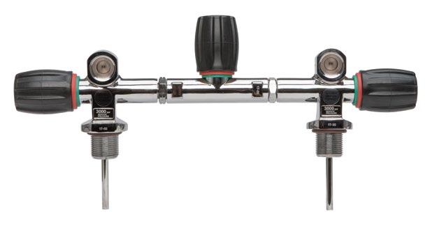A 5th port located on the end of a swivel turret allows for optimum hose configuration for sidemount or twin cylinder setups