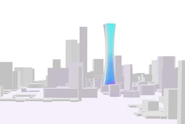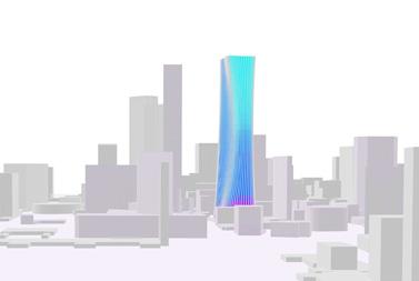 The chosen tower is the result of experiment conducted by quantitative, characteristic similarity and gene similarity patterns. The total generation number is 35 with 100 population each generation. Although this process is aim to get unpredictable results, the chosen one is the one I like most because of its slim and hyperbolic shape. the fitness value is 0.499782. axonometric view fitness value: 0.499782