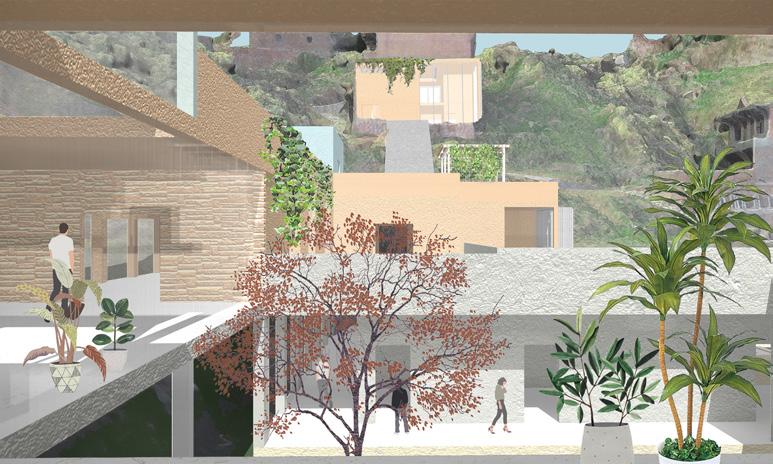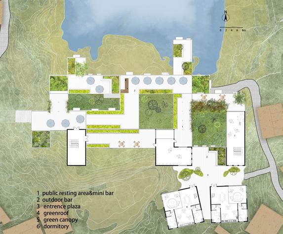 This project is a research centre for Chinese herbal medicine located in Hou Tou Wan, an abandoned uninhabited village on Shengshan Island, China. Due to the fragmented and complex topography of the site, the design strategy was to modularise the site and then select suitable modules to reassemble it, designing the arrangement of the modular units in the main building according to the mountainous topography, and remodelling the existing building to serve as a researcher's residence. In terms of plant selection, the project makes extensive use of the original ivy vegetation on the site, retaining the original landscape and view of the site to the greatest extent possible, integrating the new building with the original landscape and topography of the site, and blurring the research institute into the green