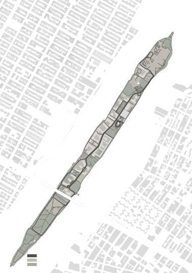Clearly define the areas that are currently abandoned and cannot be reused, and reorganise the green spaces based on the preservation of the historical heritage. Reintegration of currently closed areas into the urban space, where the future factory will become a public recreational space of historical significance