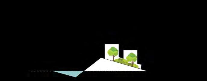 With the intention to create more intimate and romantic spaces, we designed two typologies that will be placed throughout the site. The North-South typology places solar panels at a mound facing South, directly powering the film projection on its backside facing North - it becomes a mini amphitheatre with seating extending below grade. Meanwhile, the second East-West typology utilizes mounds to hold stormwater and increase planting areas.