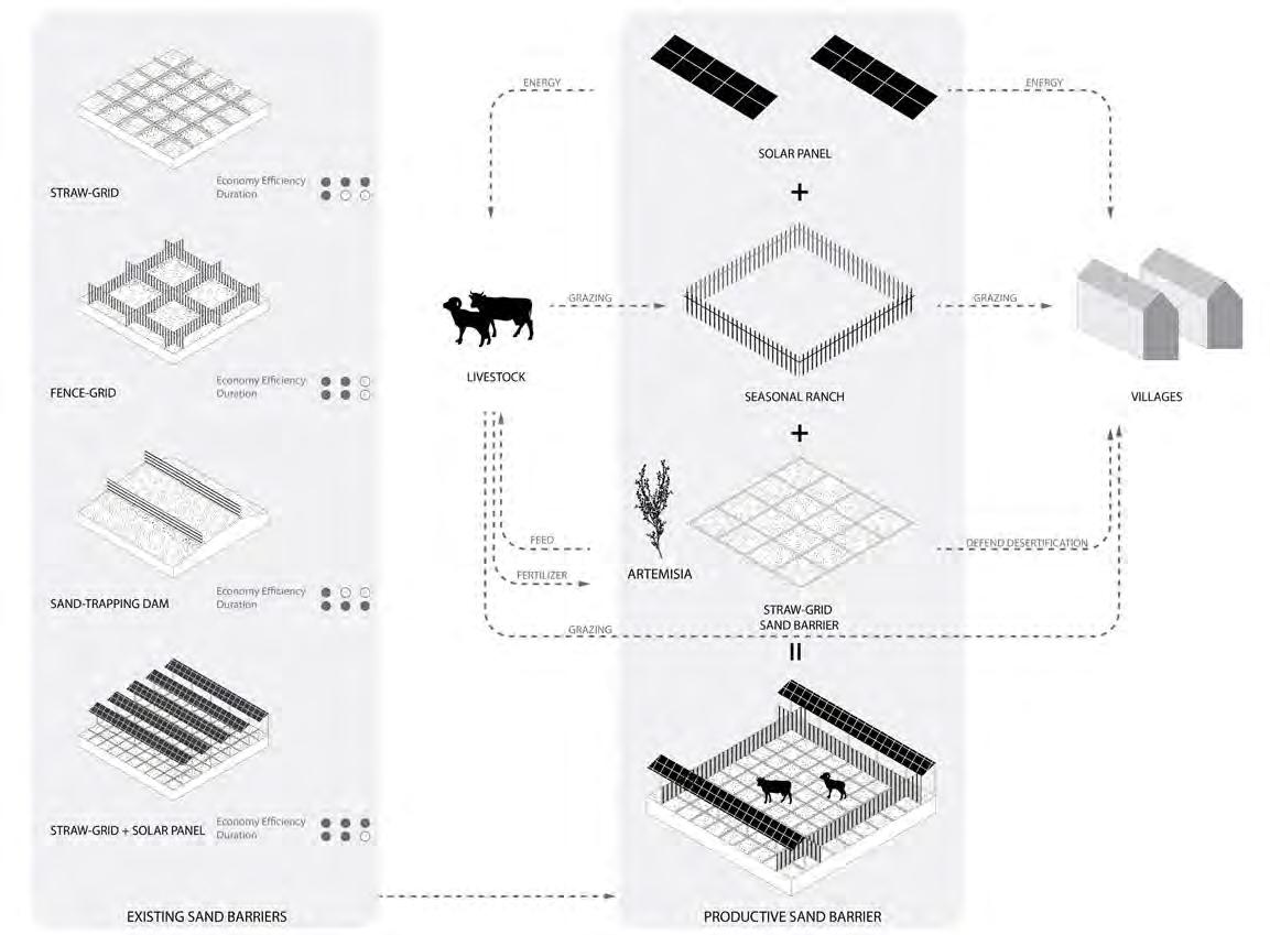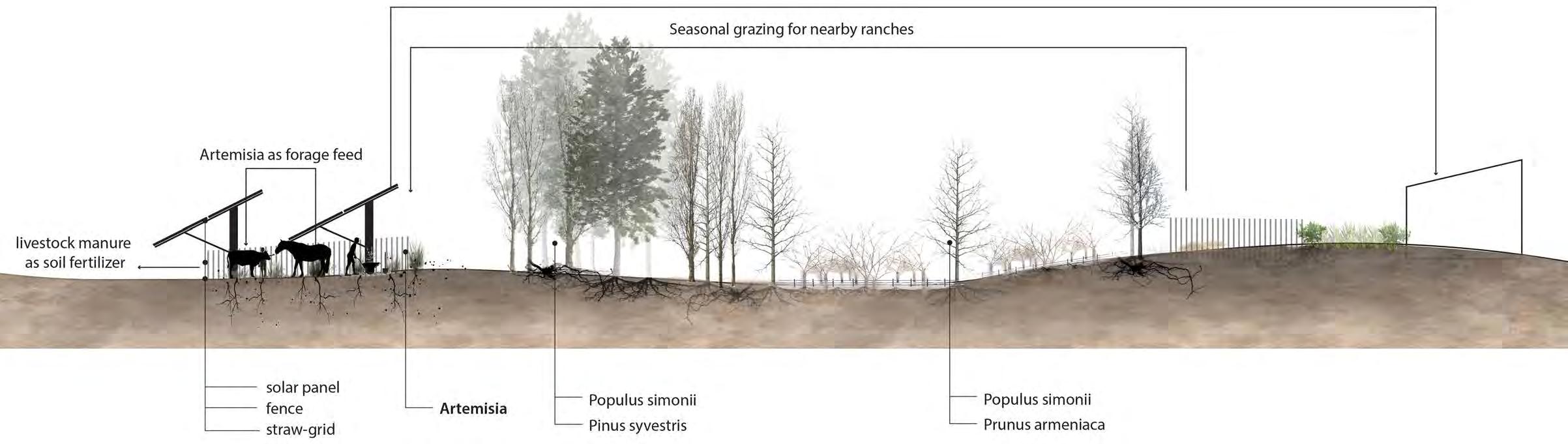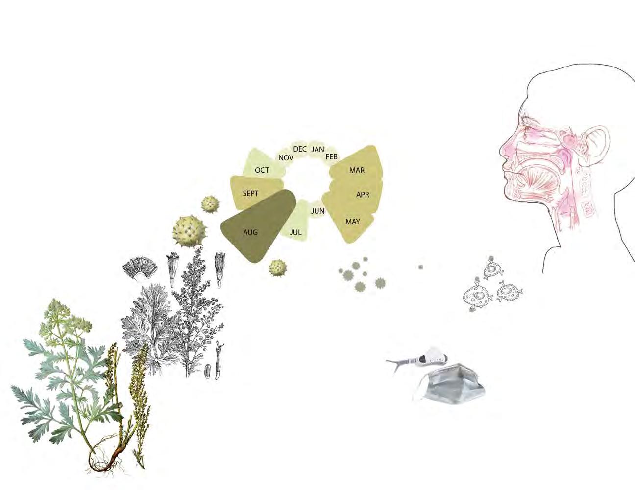 Ecological imbalances caused by intensive logging in during the 1950s have led to widespread desertification in Northern China. In response, the Three North Shelter Forest Program (TNSF) aimed to combat desertification by stabilizing soil through the mass planting of Artemisia but inadvertently triggered a crisis of allergic rhinitis caused by the plant's pollen. My thesis proposes a new approach: designing interventions that could simulate natural succession. By implementing productive sand barriers and urban green infrastructure, pollen dispersal can be reduced while reviving traditional activities and enhancing urban greenery. The goal is to achieve environmental equilibrium while mitigating allergies and desertification.