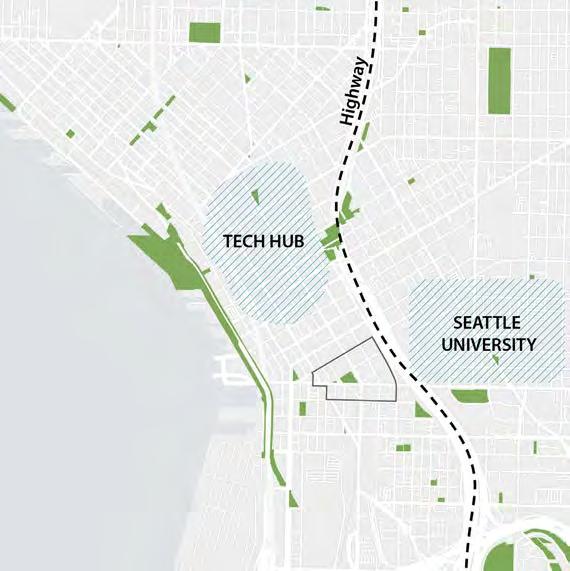 The site selection considered neighboring communities, employment areas, transit infrastructure, and existing institutions and initiatives.