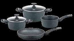 6: Set posod „GRANIT EVOLUTION“, 6/1, aluminij. Set vsebuje: 4 posode različnih velikosti in kapacitet ter 2 steklena pokrova, primeren tudi za indukcijo. (35250129/01)