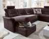 Sedežna garnitura , dim. 229 X 270 cm, v blagu temno sive barve, vključno z ležiščem, dim. 125 x 190 cm, tremi okrasnimi blazinami v zeleni barvi, nastavljivim naslonom za roke in tremi nastavljivimi nasloni za glavo. Tabure, dim. 130 X 65 cm: 309,- 219,-. Možnost leve ali desne postavitve. (29910007/01,03,73) 839,-