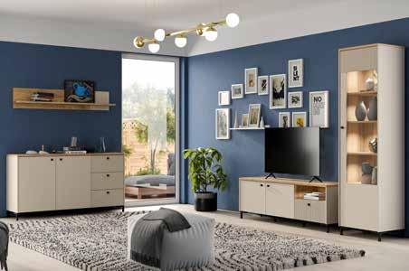 Dnevni regal, v peščeni barvi in barvi hrasta. Sestavljen je iz TV-elementa, dim. 152,8 X 50,2 X 41,9 cm: 189,- 129,-, vitrine, dim. 83,1 X 149,4 X 41,9 cm: 249,- 169,90, vitrine, dim. 53,4 X 191 X 41,9 cm: 209,- 145,-, stenski panel, dim. 140 X 25,6 X 21,9 cm: 59,90 41,90, komode, dim. 152,8 X 79 X 41,9 cm: 329,- 229,- (06870658/01-04,06)