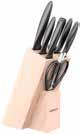 2: Blok z noži „ SEQUENCE “ , 6/1. Set vsebuje 4 nože iz jekla, škarje in stojalo iz lesa. Set nožev „MOJO“, 8/1. Set vsebuje 5 nožev iz jekla, škarje, brusilec in stojalo iz lesa. (37312526/01;54800033/01)