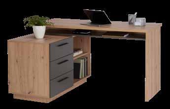 Kotna pisalna miza , dim. 138 X 75 X 105 cm. Univerzalna, montaža možna levo ali desno. Korpus artisan hrast, fronte antracit. (07780059/01)
