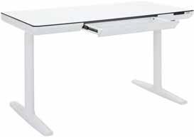 Električno nastavljiva pisalna miza , dim. 140 X 73–118 X 70 cm, bele barve, črna obroba, predal, kovinsko podnožje, višina nastavljiva v razponu 73–118 cm, funkcija brezžičnega polnjenja. (07880080/01)