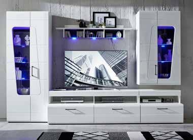 Dnevni regal, dim. 330 X 209 X 47 cm, mediapan, barva: bela, visoki sijaj. Vključno z LED-osvetlitvijo. (27370381/01-02)