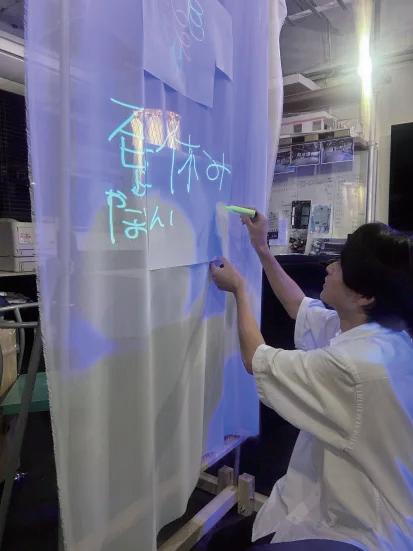 木架構にかけられたカーテン