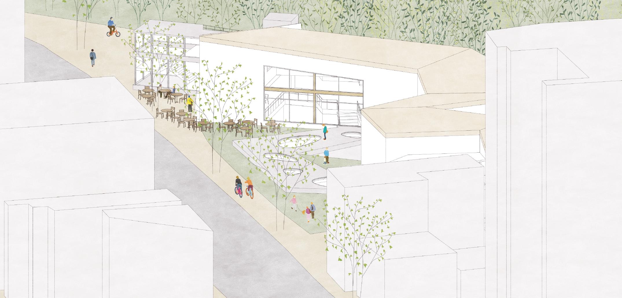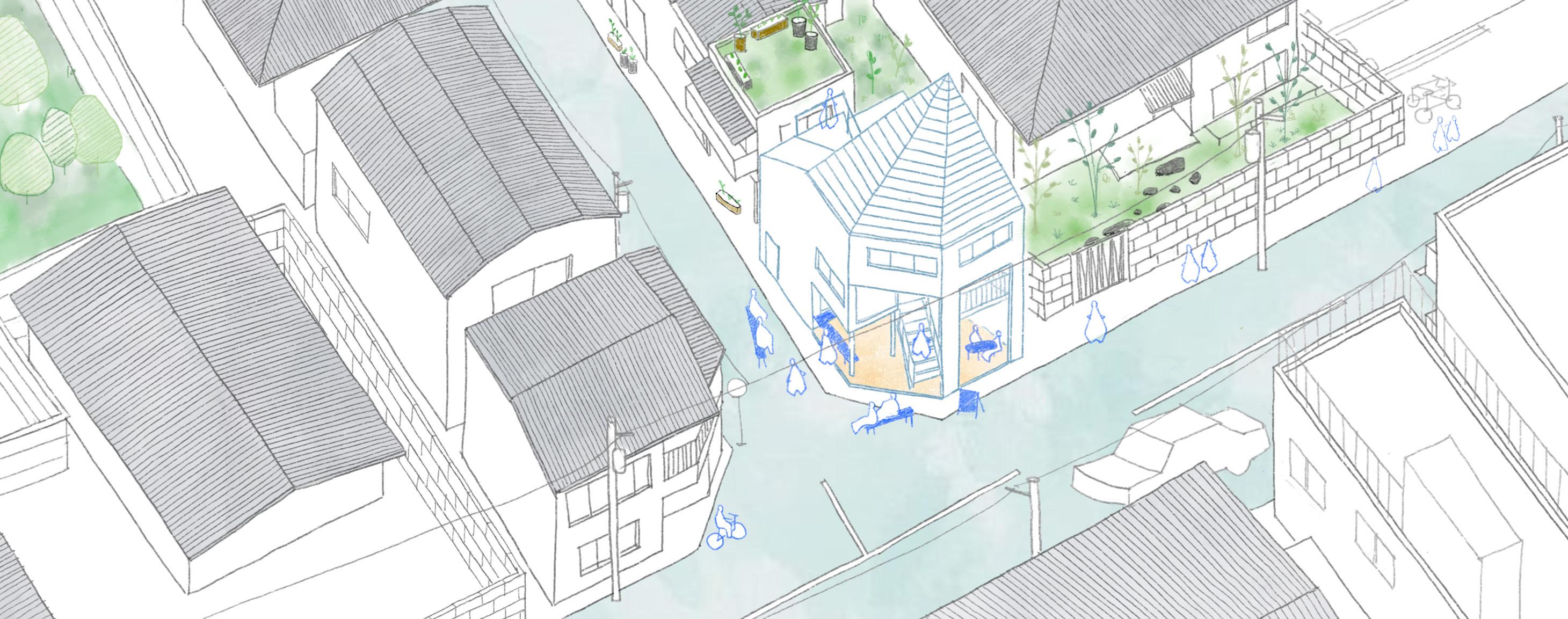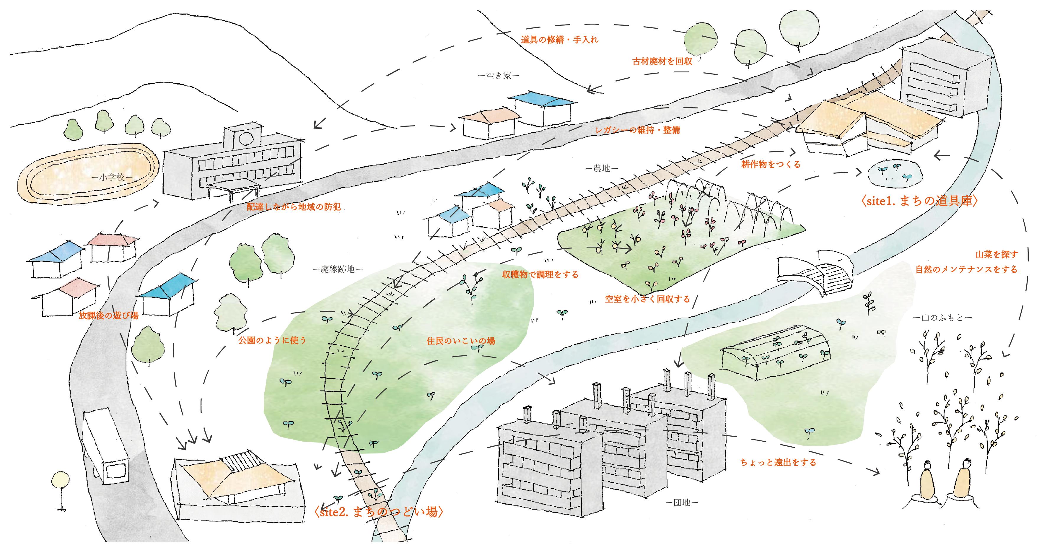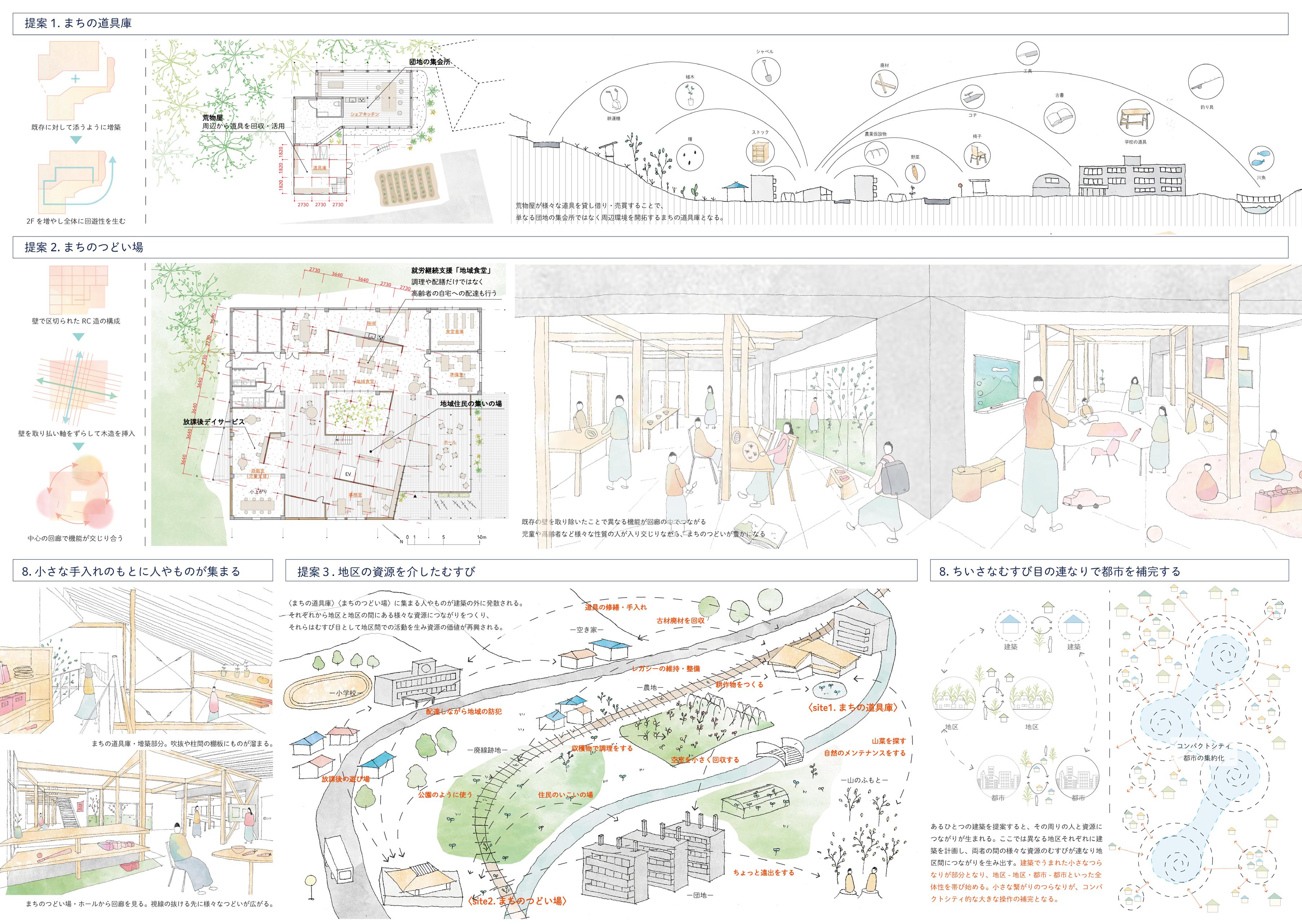 現存する公共施設を増改築しながら、地区内・地区間のつながりを生むような地域拠点をつくる