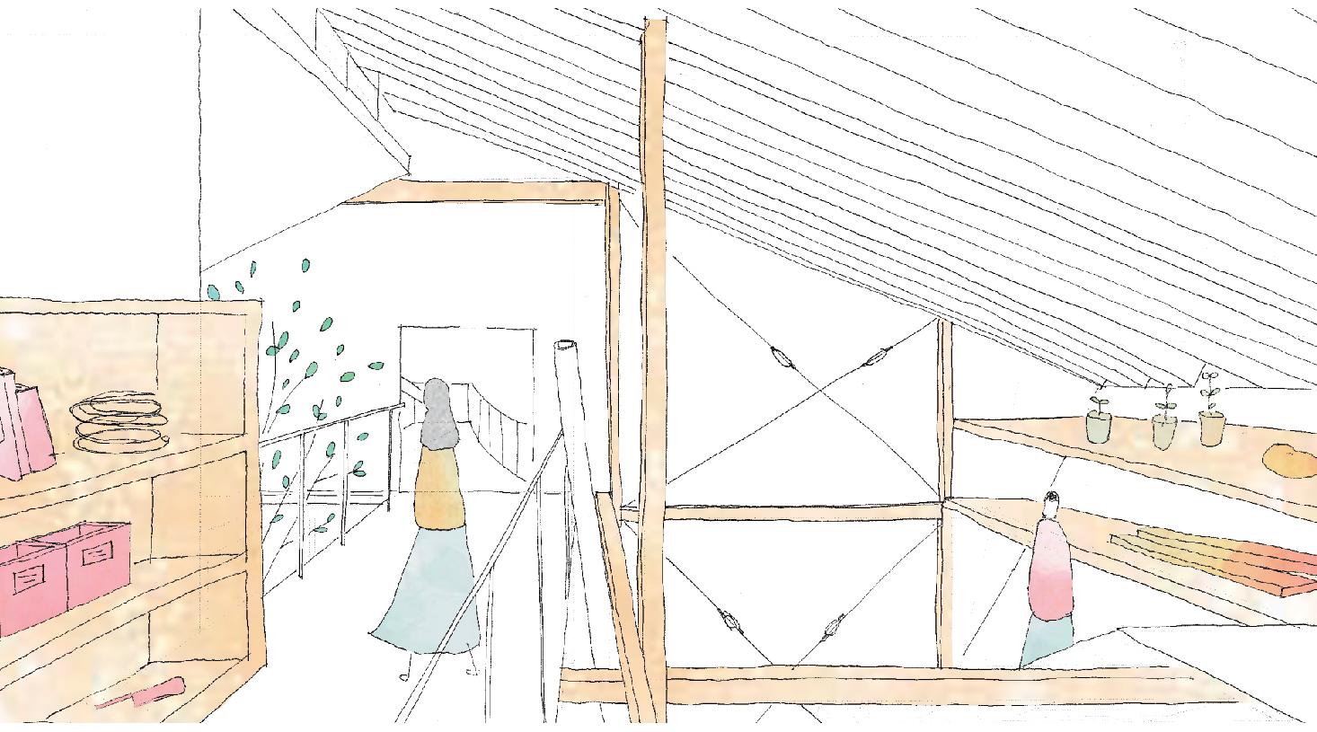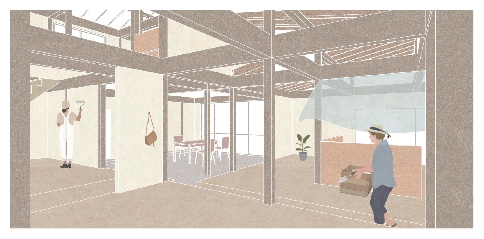基礎の上に立ち上がるものは自らや他者の手で作り上げる” 営み” が現れたり、この土地にできる新しい” 景観” と捉えられる。