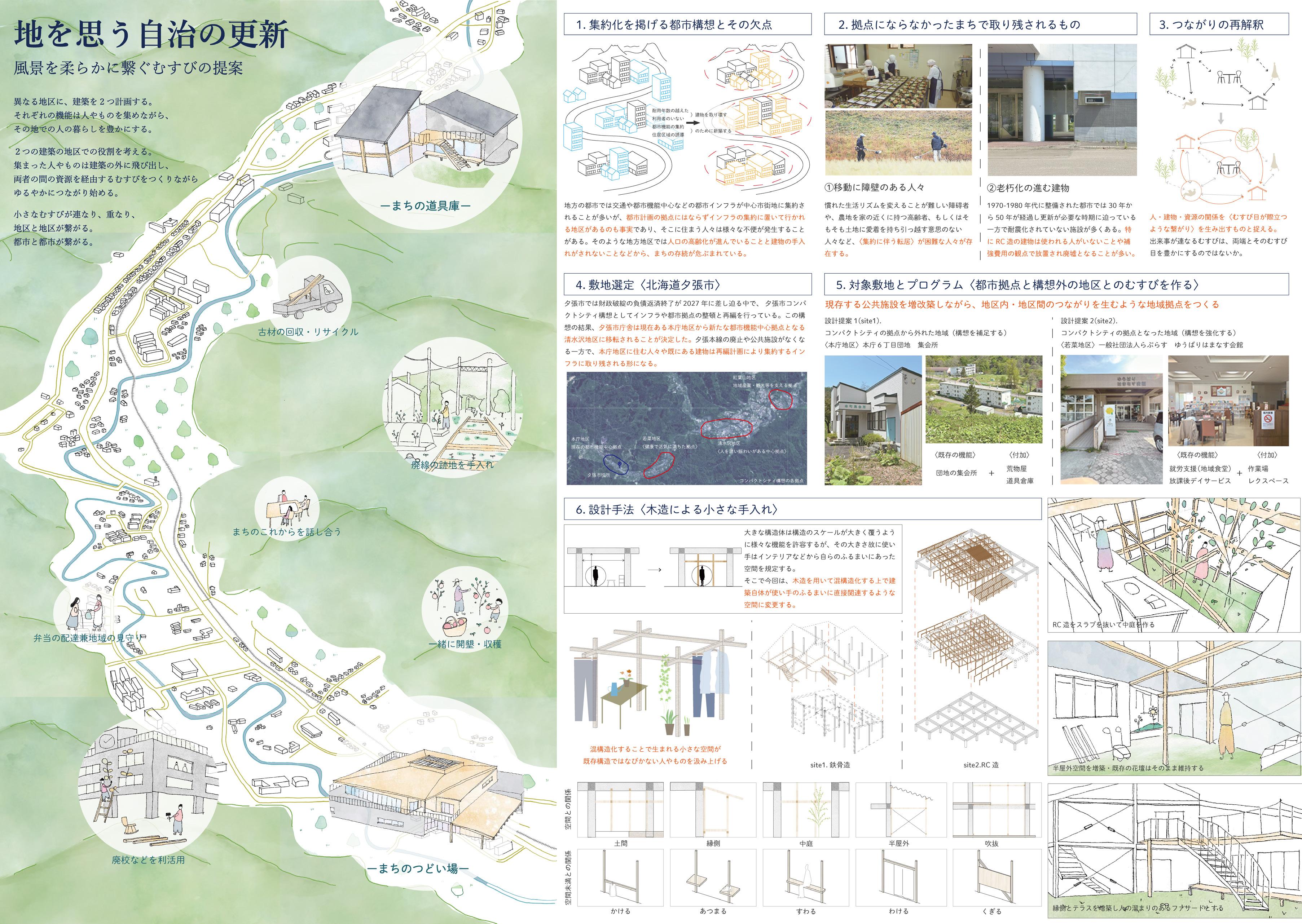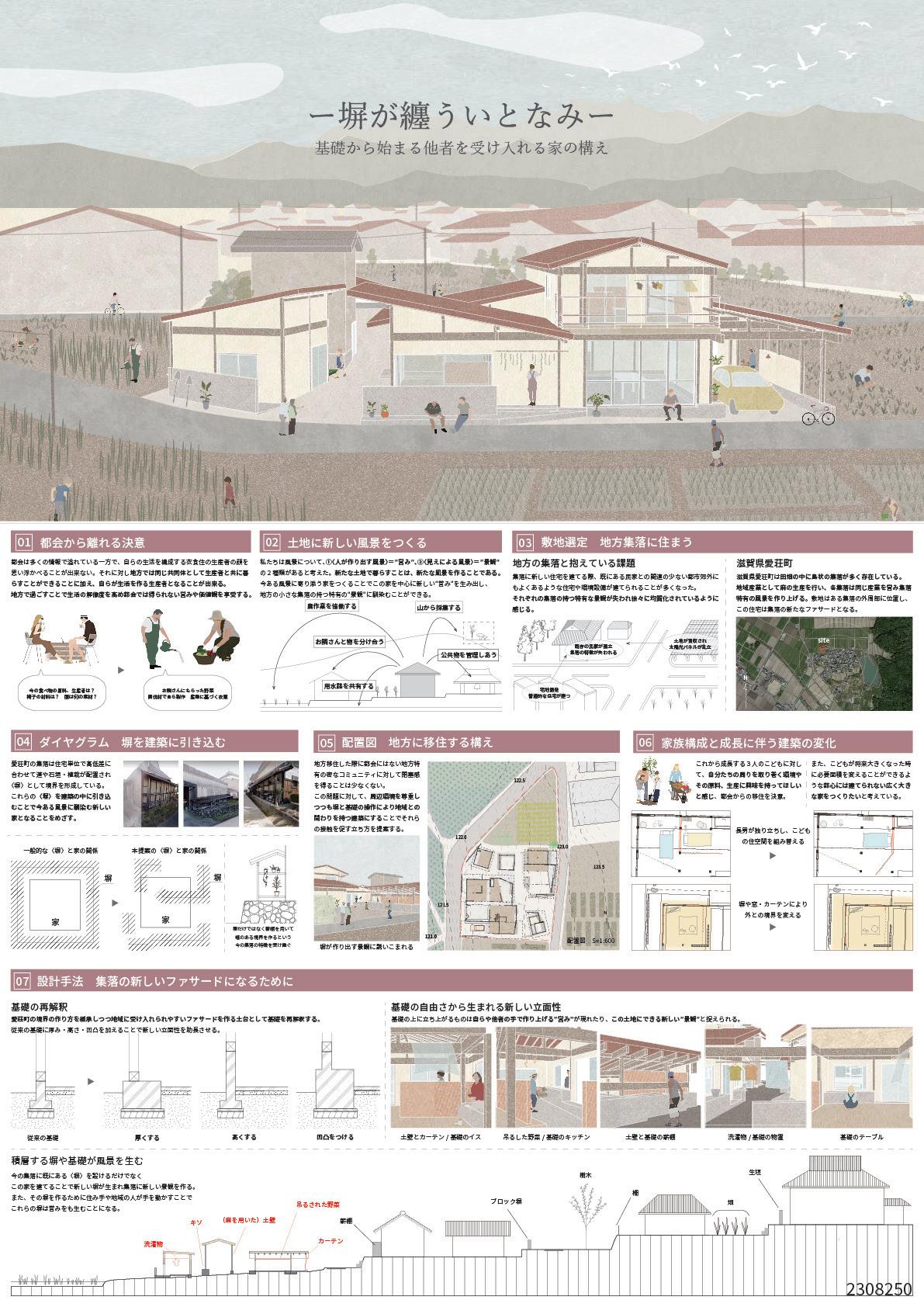 2024年度日本建築学会建築設計競技 支部入選 2024年度一般社団法人ASIBAインキュベーションプログラム2期 最優秀賞(清水建設賞)・ASIBA賞 2023年度木の家設計グランプリ 一次審査通過 設計課題学内講評会 最優秀賞1回・優秀賞2回