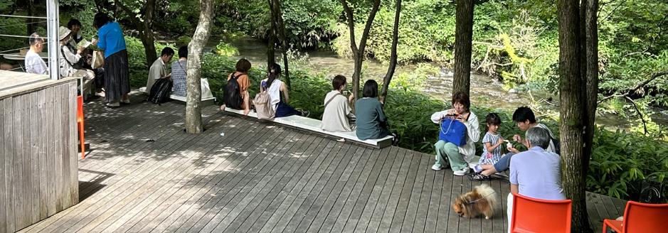 北軽井沢の特性に向き合うシーンの連続から、自然や時の流れと対話する体験のながれを創り出す。