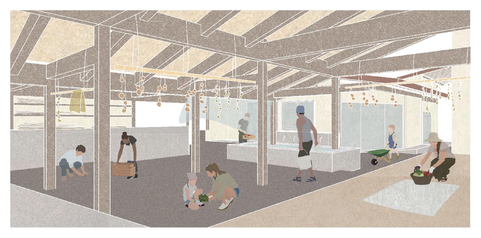 2023年度前期建築設計スタジオ「資源を支える建築」 指導教員:山﨑健太郎 場所や環境と結びついた「資源」を、建築設計を考える 上で手がかりとする。カーボンニュートラル社会を壮大 な夢と感じるのではなく今取り組むべきものとして捉 え、「資源」を手がかりにそれを支える建築を提案する。