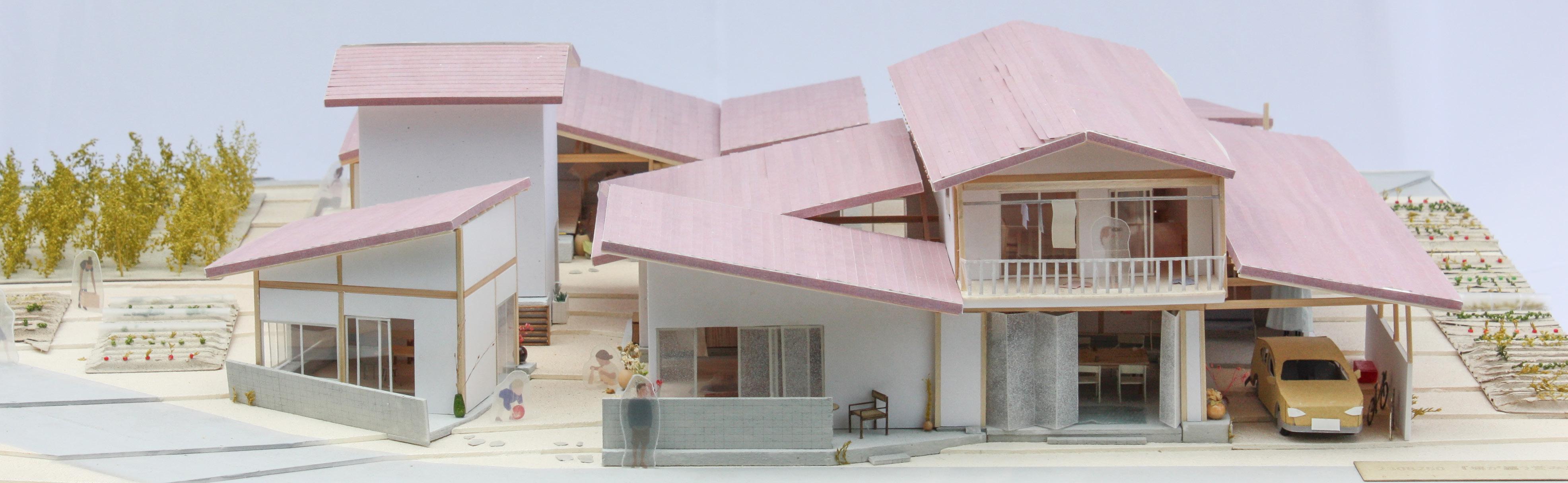 集落の外周部に住むうえで新しい風景となるための多様なかたちの屋根