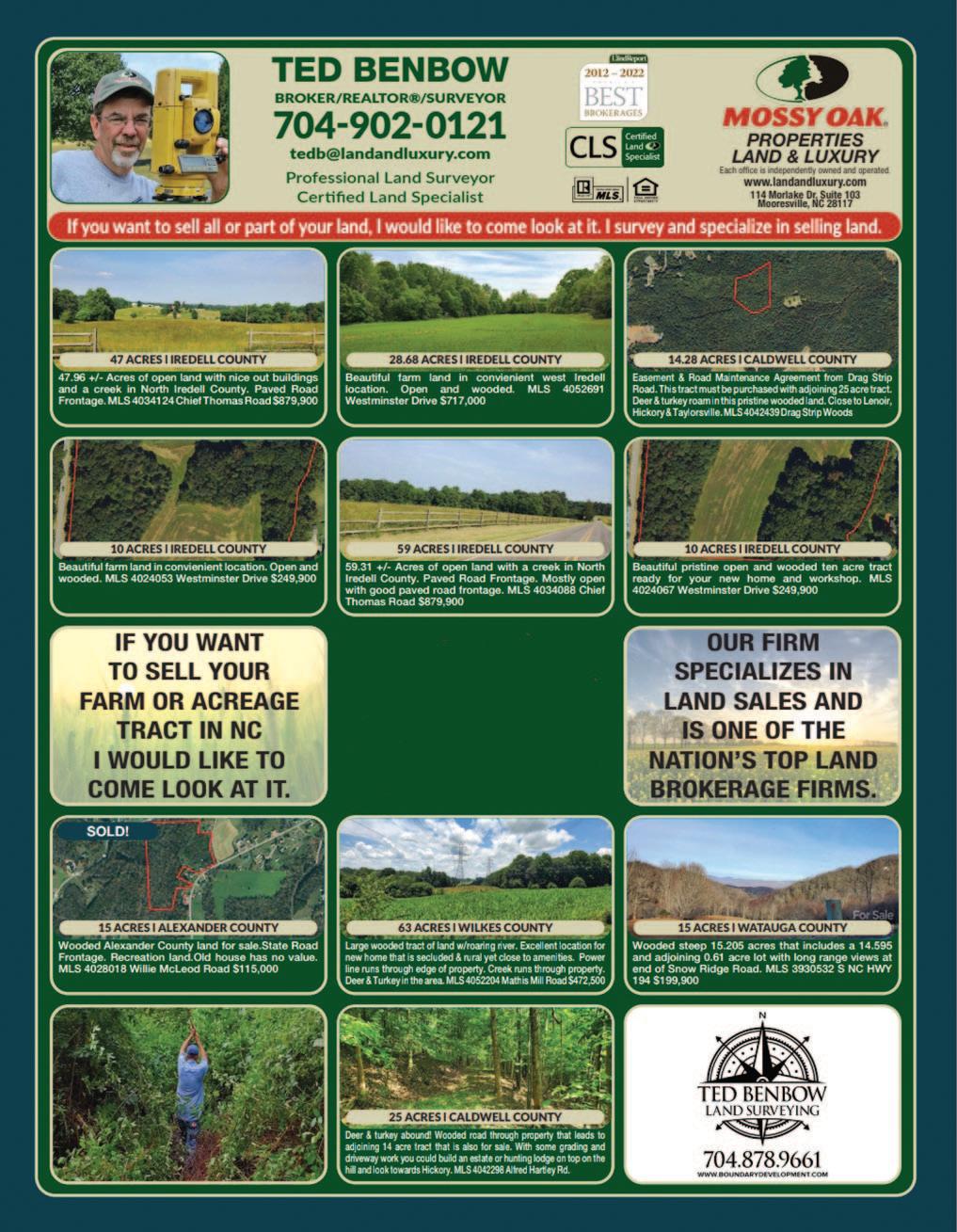 91 September-October 2023 Buying Standing Timber & Logs Timber appraisals are free with no obligation. Contact our timber buyers for more information. Justin Groce 3369841168 Dakota Gentry 3364883890 Hardwood Mulch Red Oak & Mixed Hardwood Both types are double ground for color and consistency. We offer pickup as well as delivery service within a 100 mile radius. 3368381101 1461 Speedway Road North Wilkesboro, NC 28659 Find us on Facebook @HighCountryLumberandMulch HIGH COUNTRY LUMBER AND MULCH, LLC Selection, Service, Delivery Available LTD will help you to determine the right safe for your needs. A trusted, reliable Liberty Safe dealer. 1073 Meadowbrook Drive, King www.ltdfarmandgarden.com 336-983-4331 M-F 7:30-5:30 • Sat 7:30-1
